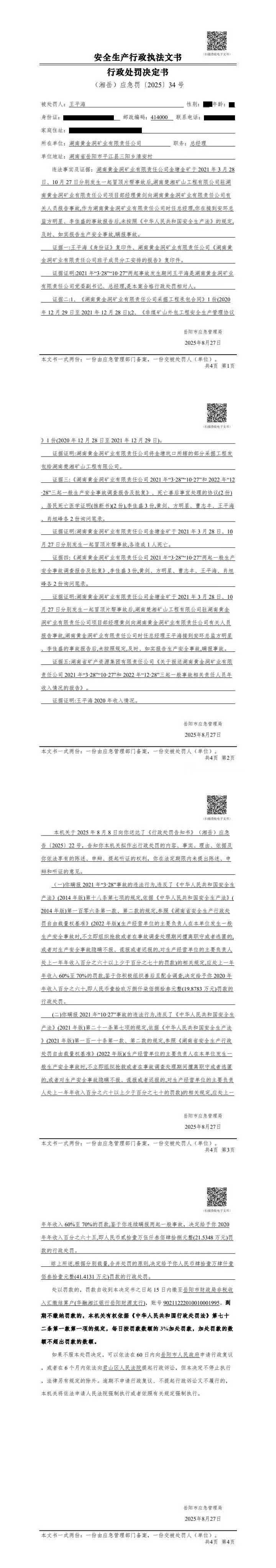 王平海处罚决定书