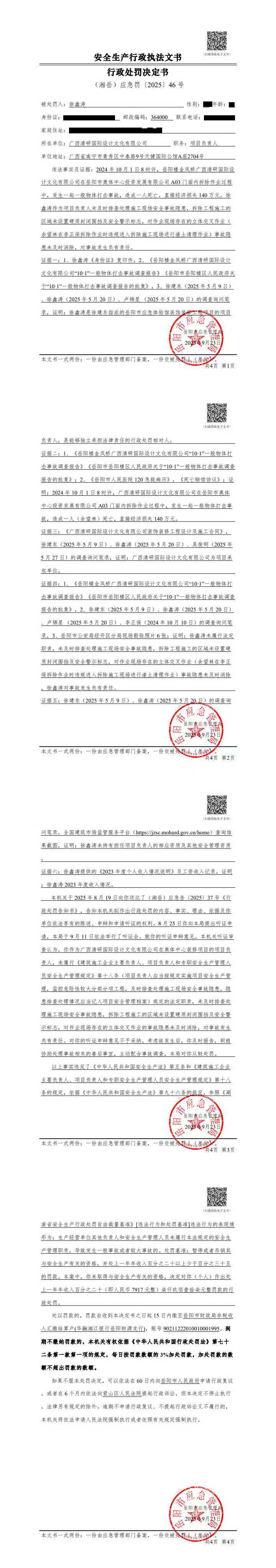 徐鑫涛处罚决定书