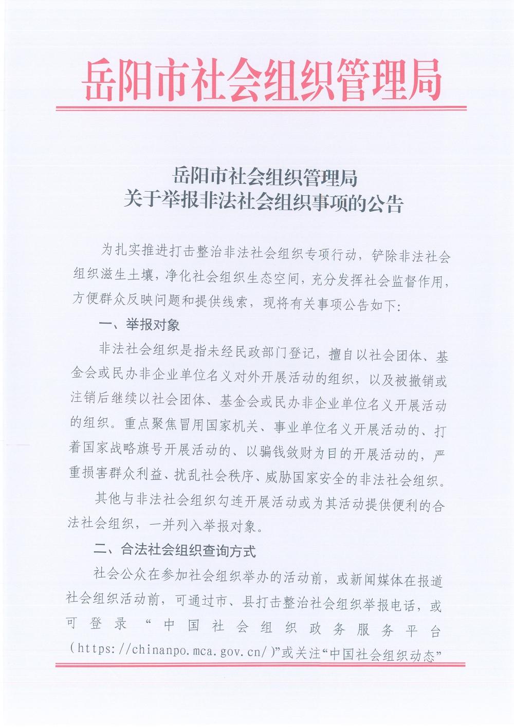 关于举报非法社会组织事项的公告