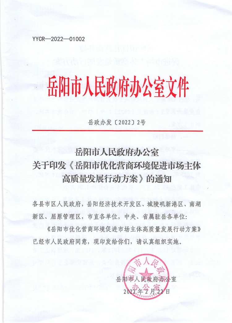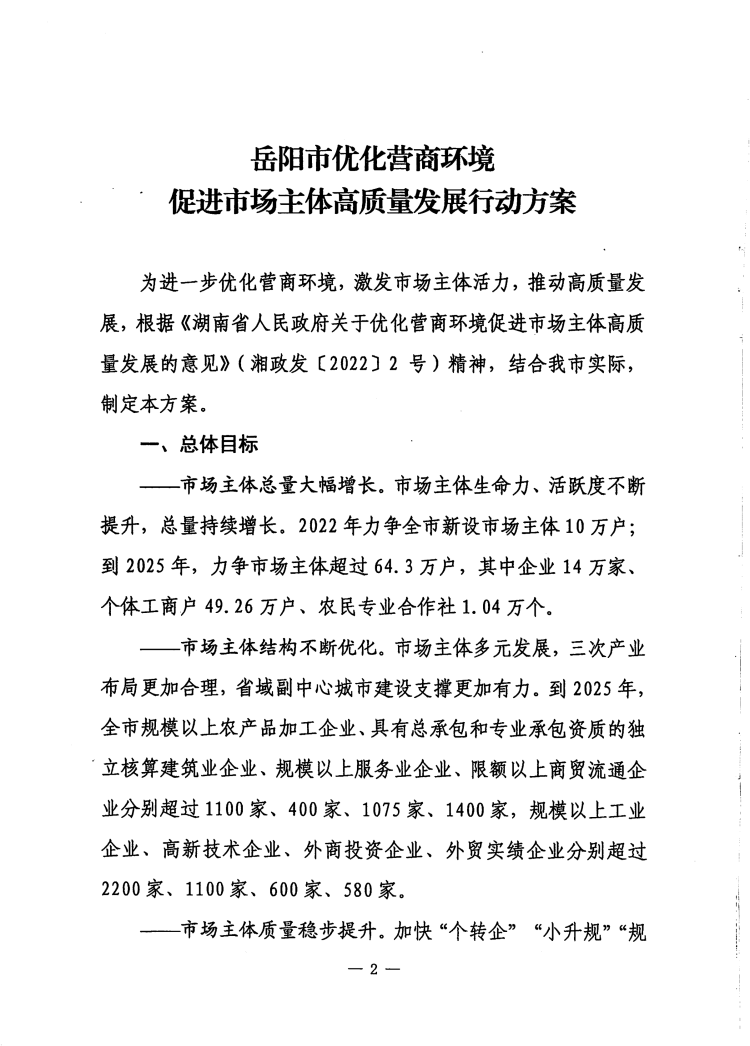 岳阳市优化营商环境促进市场主体高质量发展行动方案