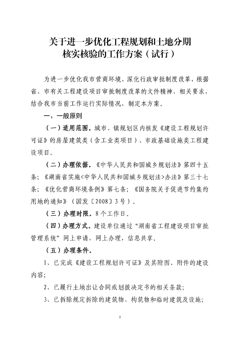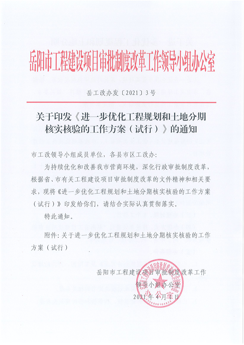 岳阳市工改办关于印发《进一步优化工程规划和土地分期核实核验的工作方案(试行)》的通知