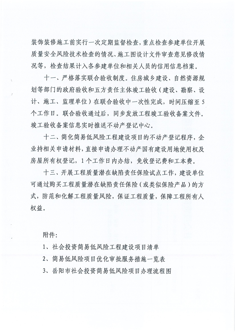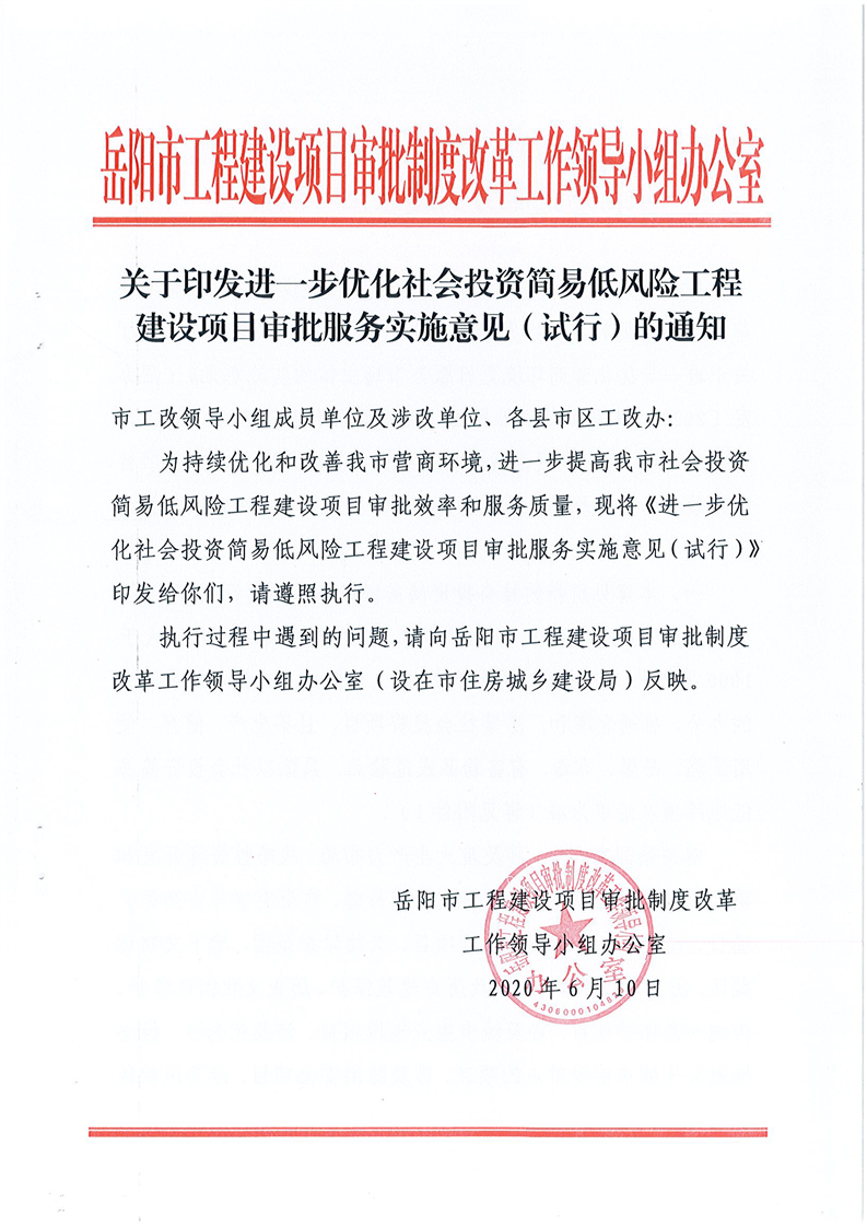 岳阳市工改办关于印发《进一步优化社会投资简易低风险工程建设项目审批服务实施意见(试行)》的通知