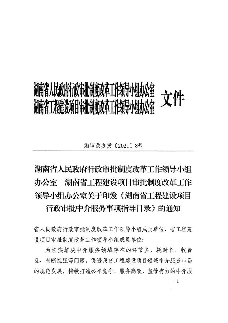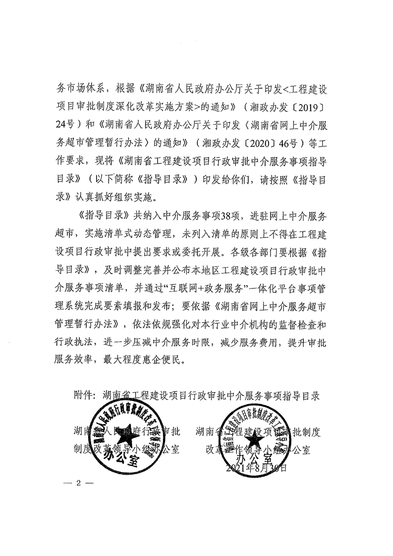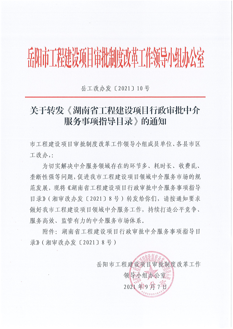 岳阳市工改办关于转发《湖南省工程建设项目行政审批中介服务事项指导目录》的通知