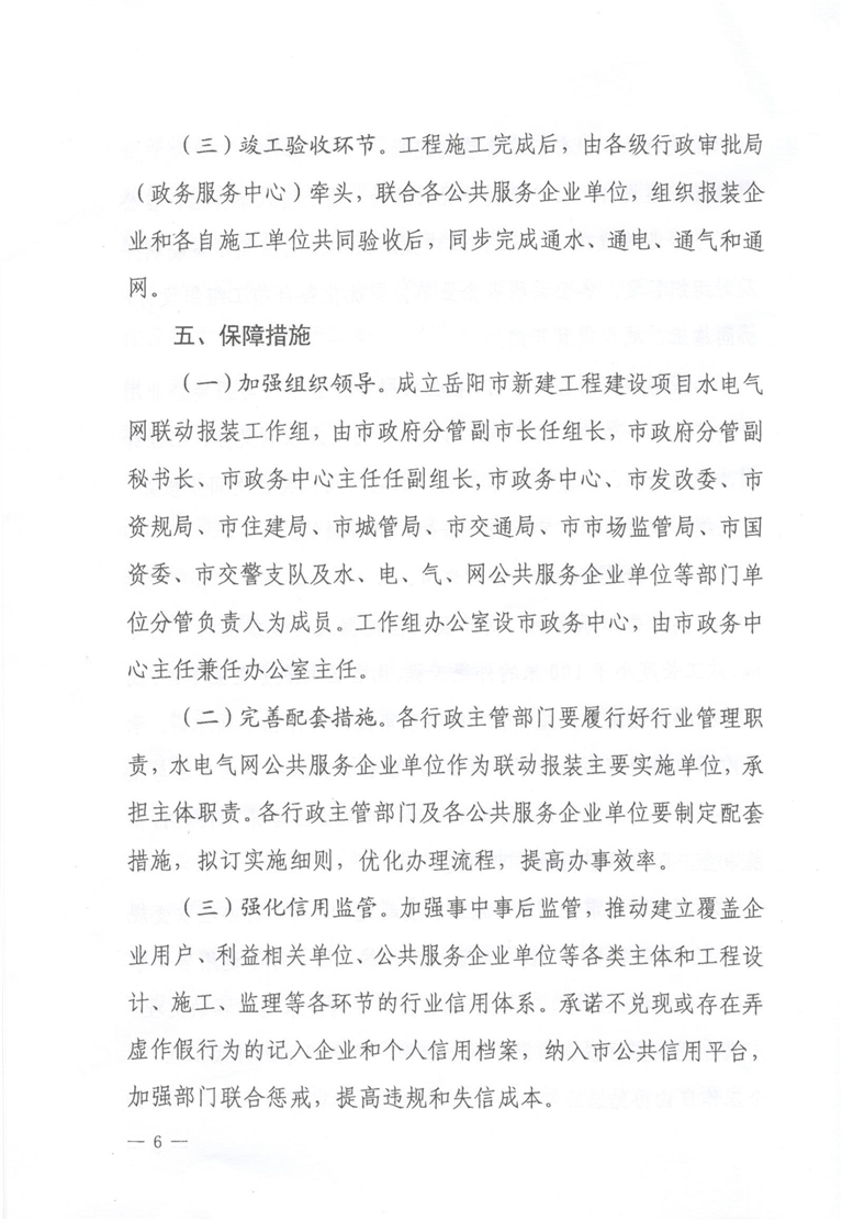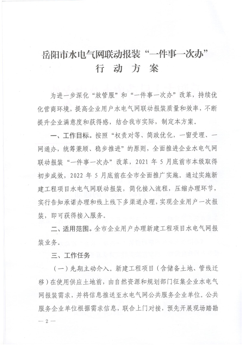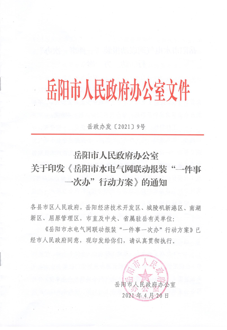 岳阳市人民政府办公室关于印发《岳阳市水电气网联动报装“一件事一次办”行动方案》通知