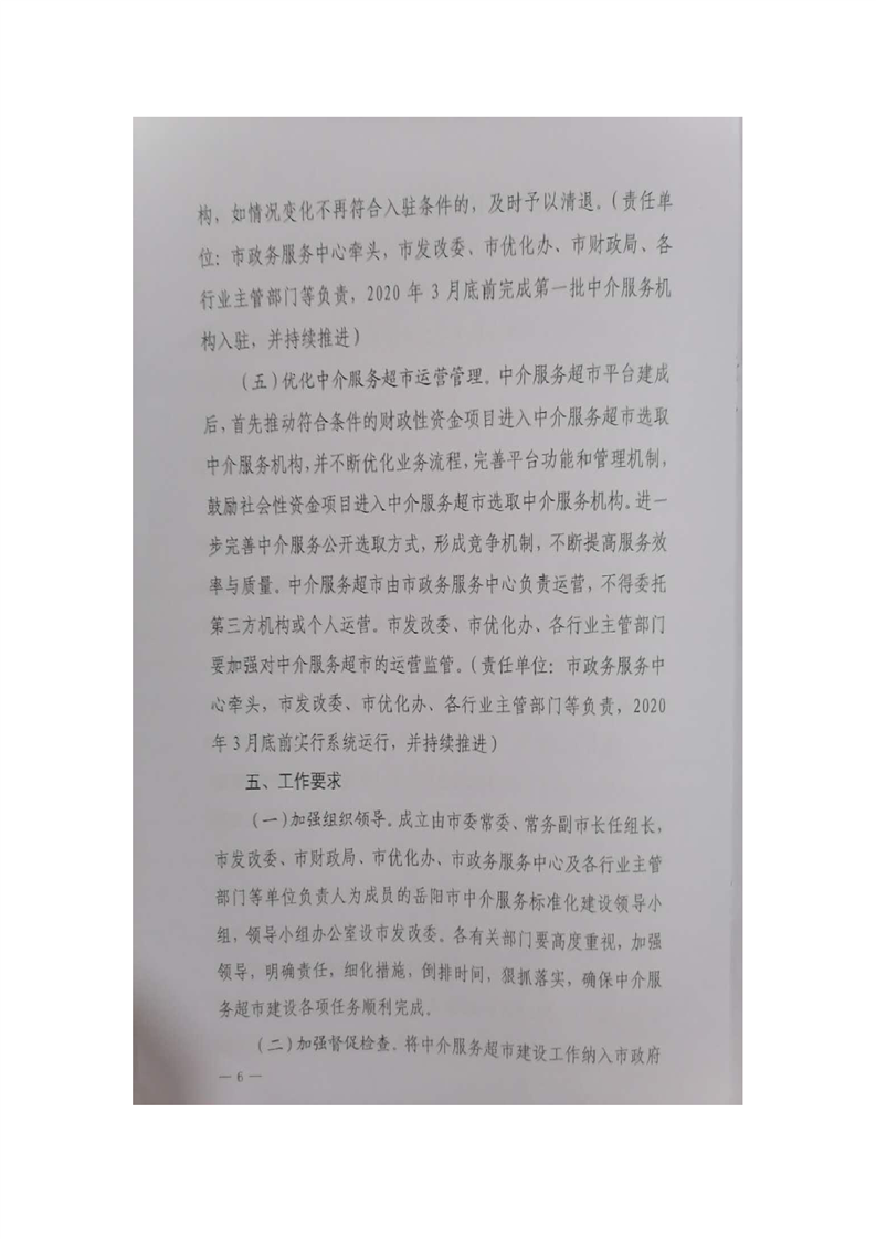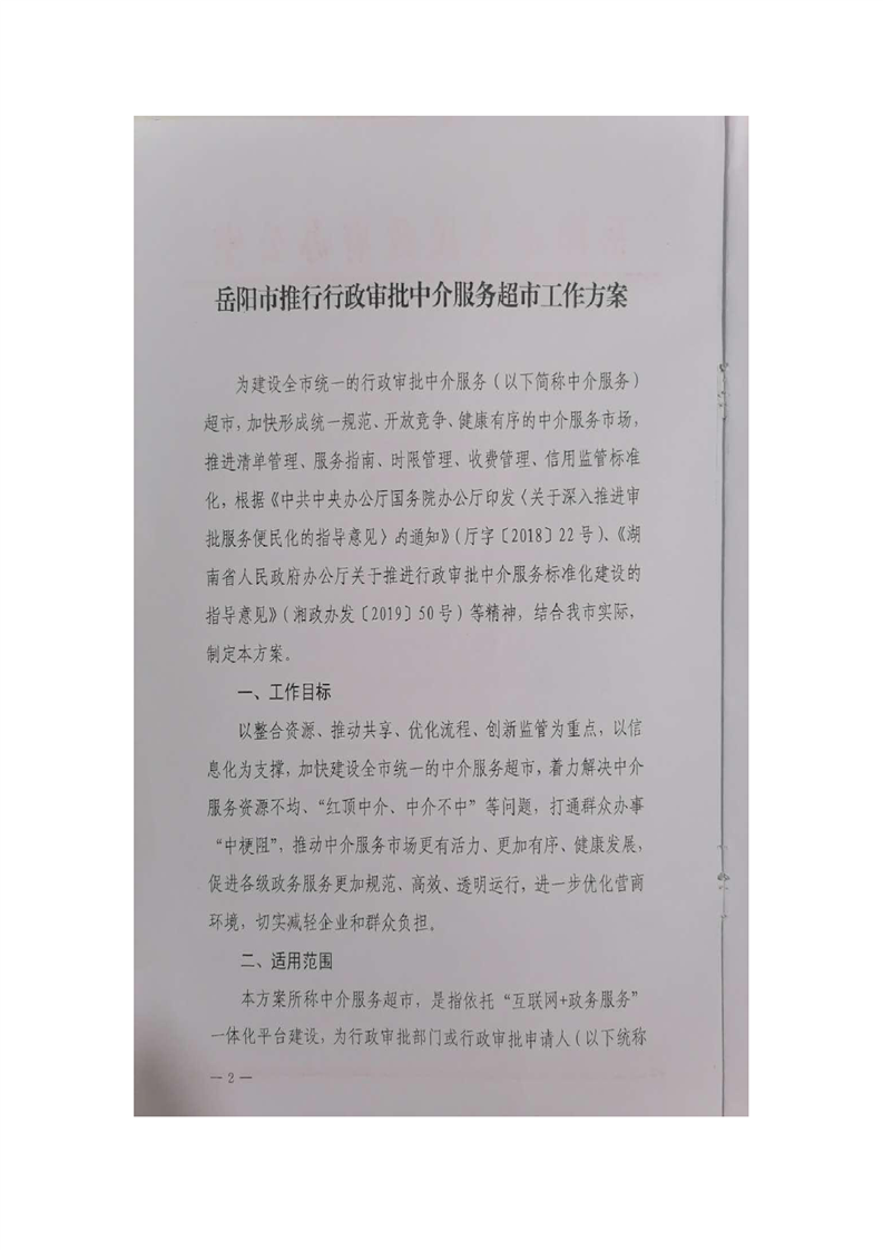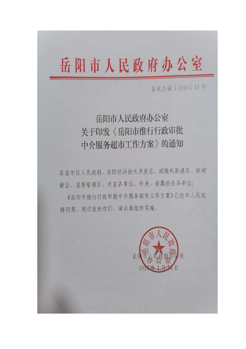 岳阳市人民政府办公室关于印发《岳阳市推行行政审批中介服务超市工作方案》