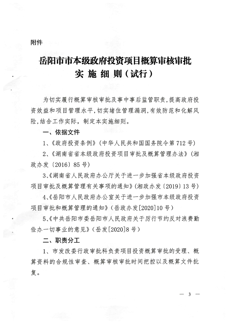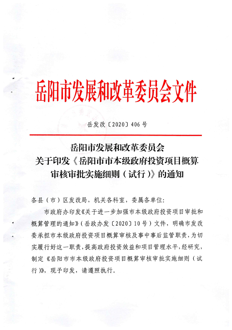 岳阳市发展和改革委员会关于印发《岳阳市市本级政府投资项目概算实施细则(试行)》的通知