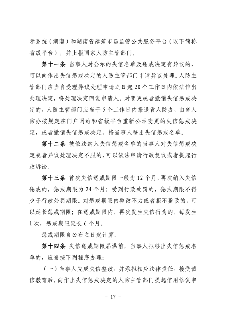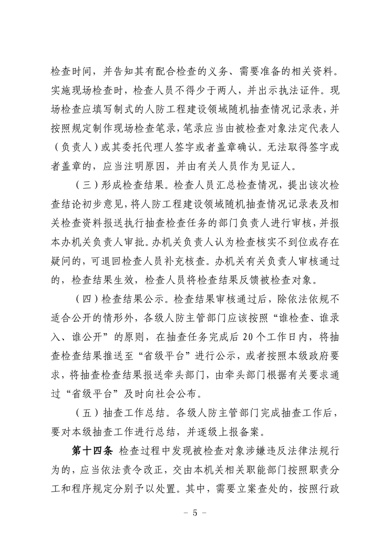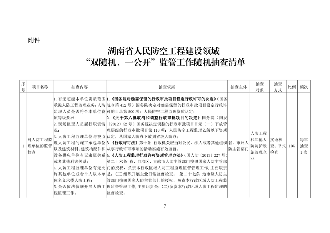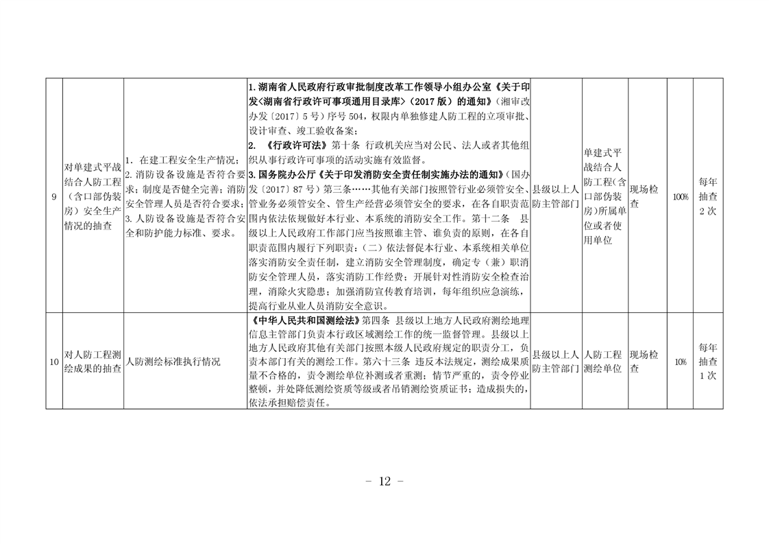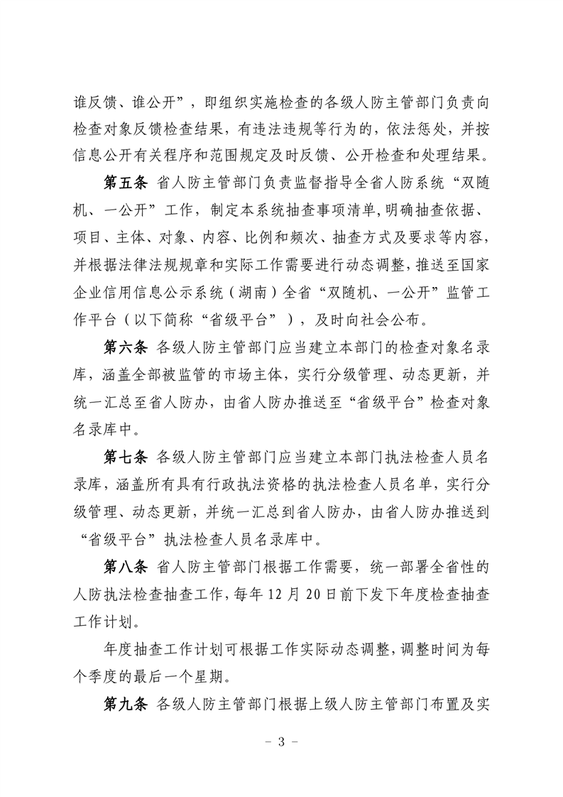 湖南省人民防空办公室关于印发《湖南省人民防空工程建设领域“双随机、一公开”监管实施细则(试行)》《湖南省人民防空工程建设领域失信行为惩戒办法(试行)》的通知