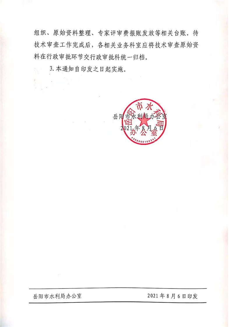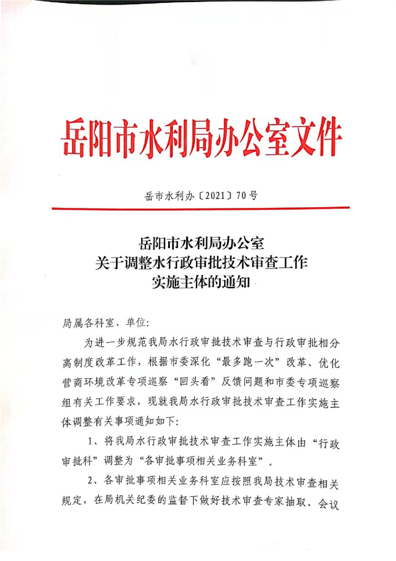 岳阳市水利局办公室《关于调整水行政审批技术审查工作实施主体》的通知