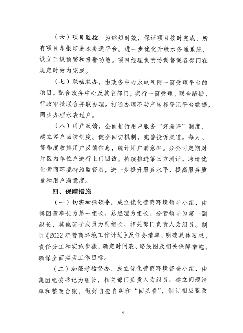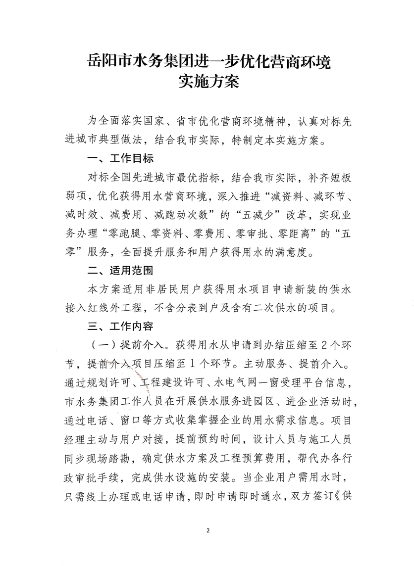 岳阳市水务集团关于印发《岳阳市水务集团进一步优化营商环境实施方案》的通知