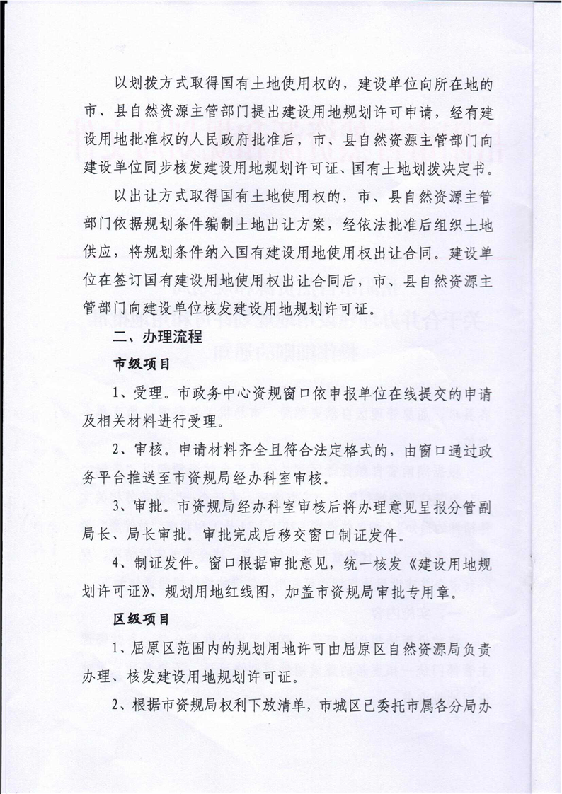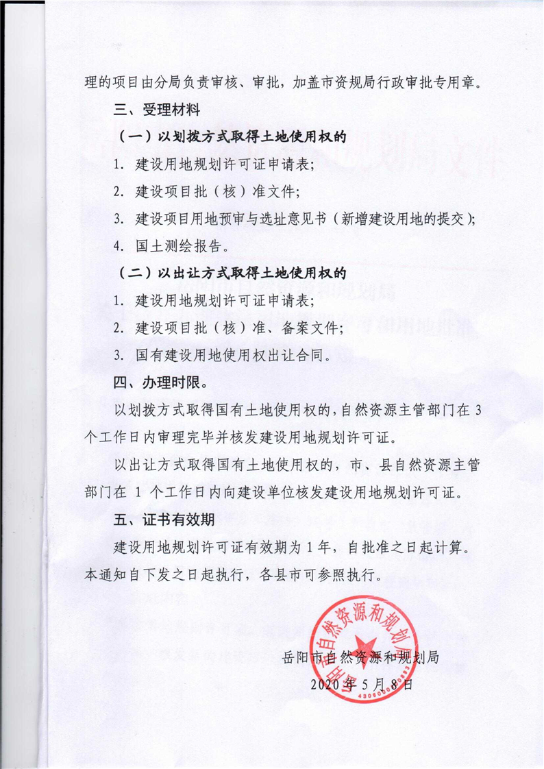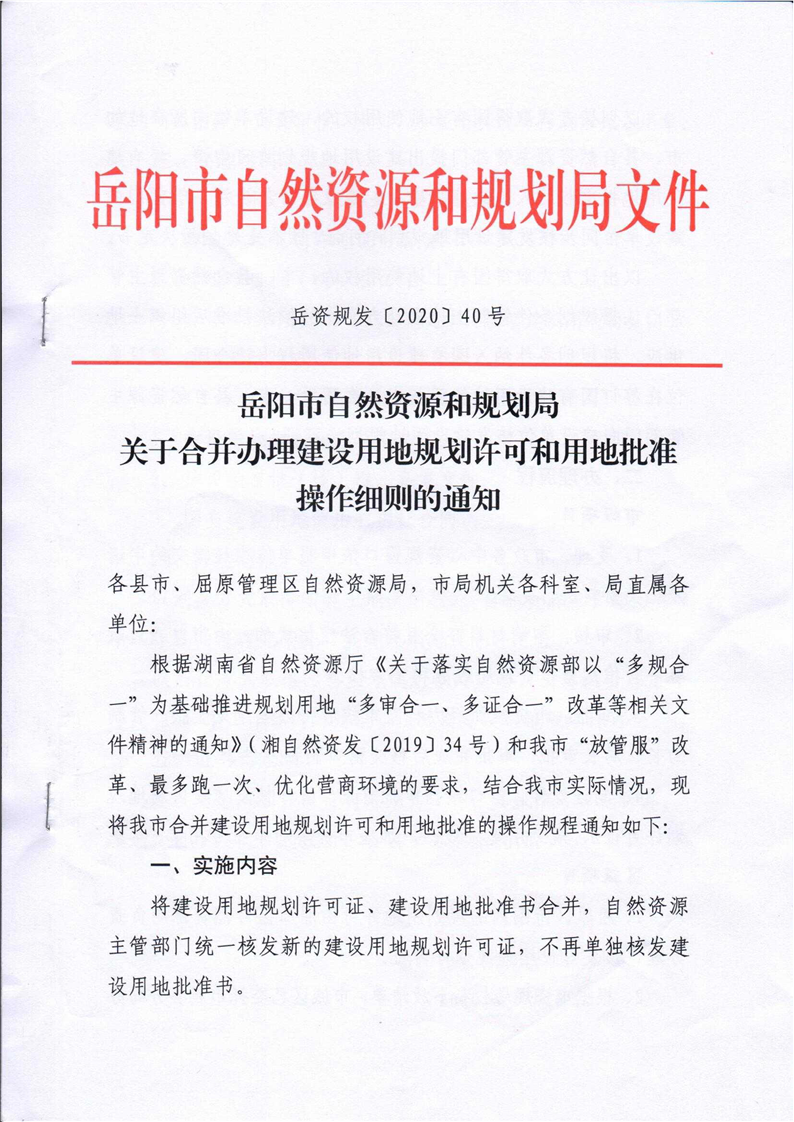 岳阳市自然资源和规划局《关于合并办理建设用地规划许可和用地批准操作细则》的通知