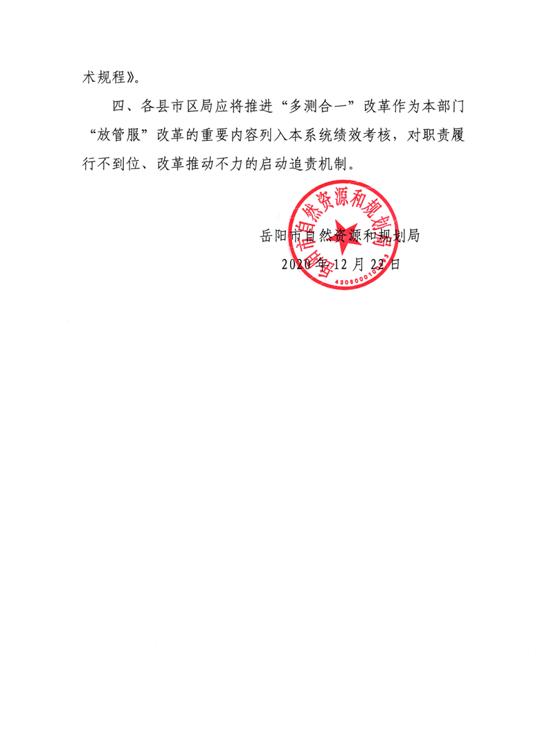 岳阳市自然资源和规划局《关于进一步推进“多测合一”工作》的通知