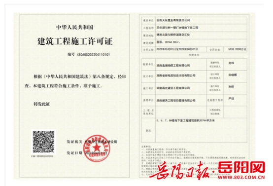 岳阳日报全媒体讯(记者 陈毅)“在疫情期间,公司办理的地下施工工程许可证的从网上平台上传资料到领证,仅仅只用了3天的时间,大大缩短了项目开工时间。”4月11日,市住建局为天伦湖与树地产项目颁出全省首张线上正负零以下分阶段施工许可证。