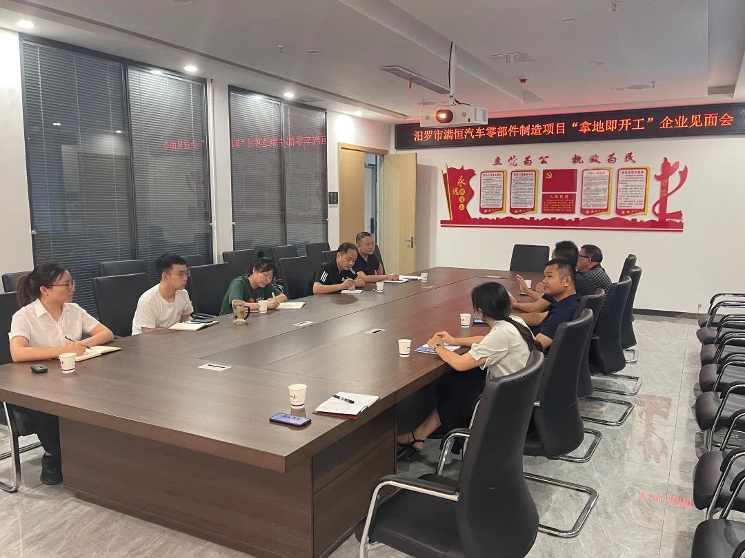 7月13日,汨罗满恒汽车零部件制造项目负责人与汨罗市工改负责人及帮办专员见面沟通,企业见面会上,帮办专员陈怡廷介绍“拿地即开工”政策后,建设单位负责人介绍了汨罗满恒汽车零部件制造项目情况。汨罗市人民政府优化办郑宇同志及汨罗市住建局审批股股长许波与建设单位负责人就有关问题进行深入交流,并表示将组建帮代专班全程为该项目服务,下一步将制定满恒项目拿地即开工实施方案,组织召开部门联席会。
