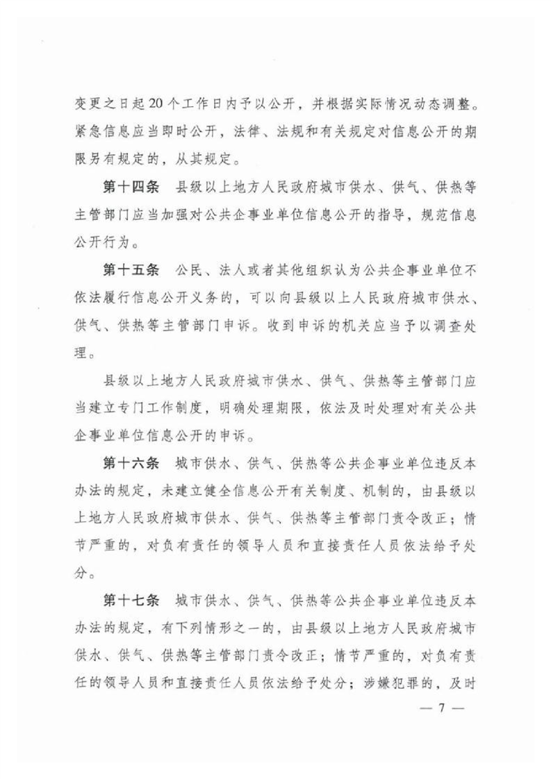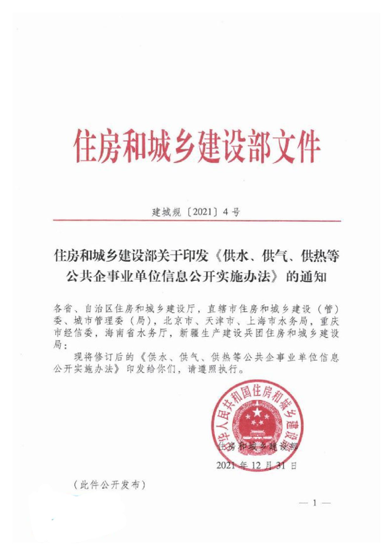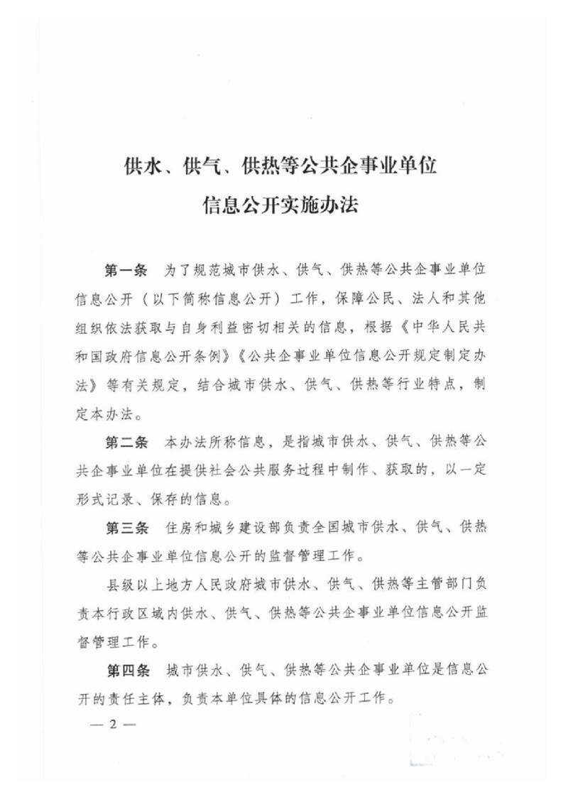 住房和城乡建设部关于印发《供水、供气、供热等公共企事业单位信息公开实施办法》的通知