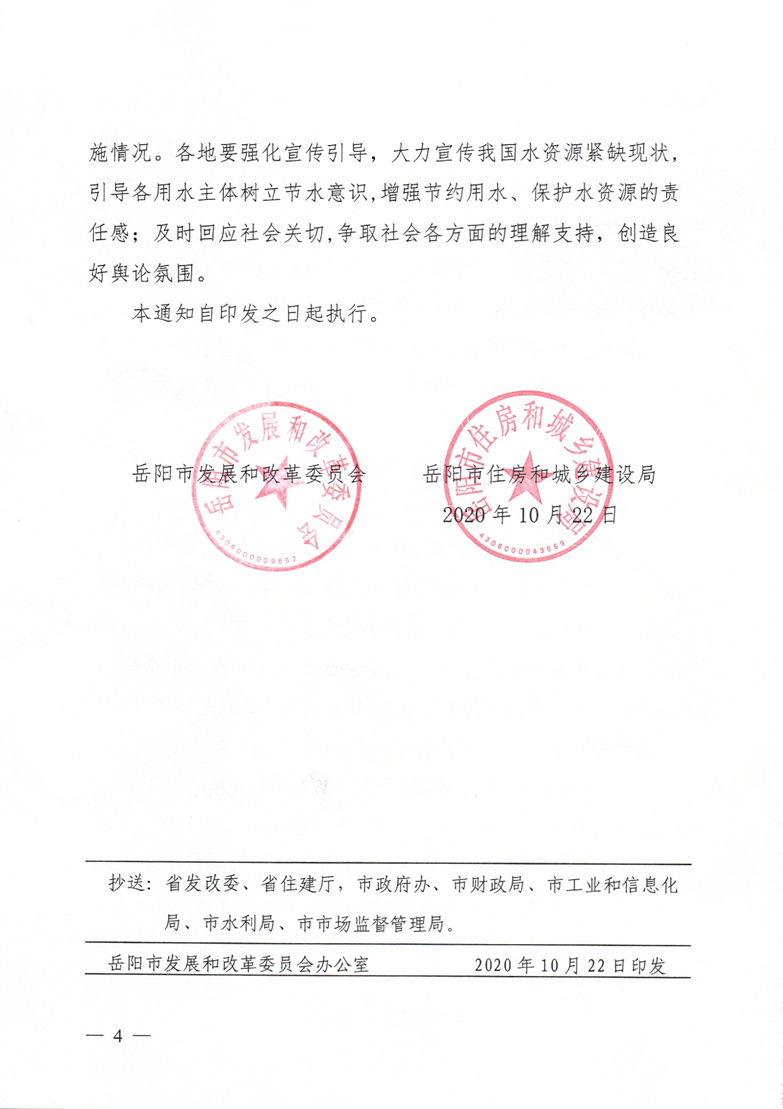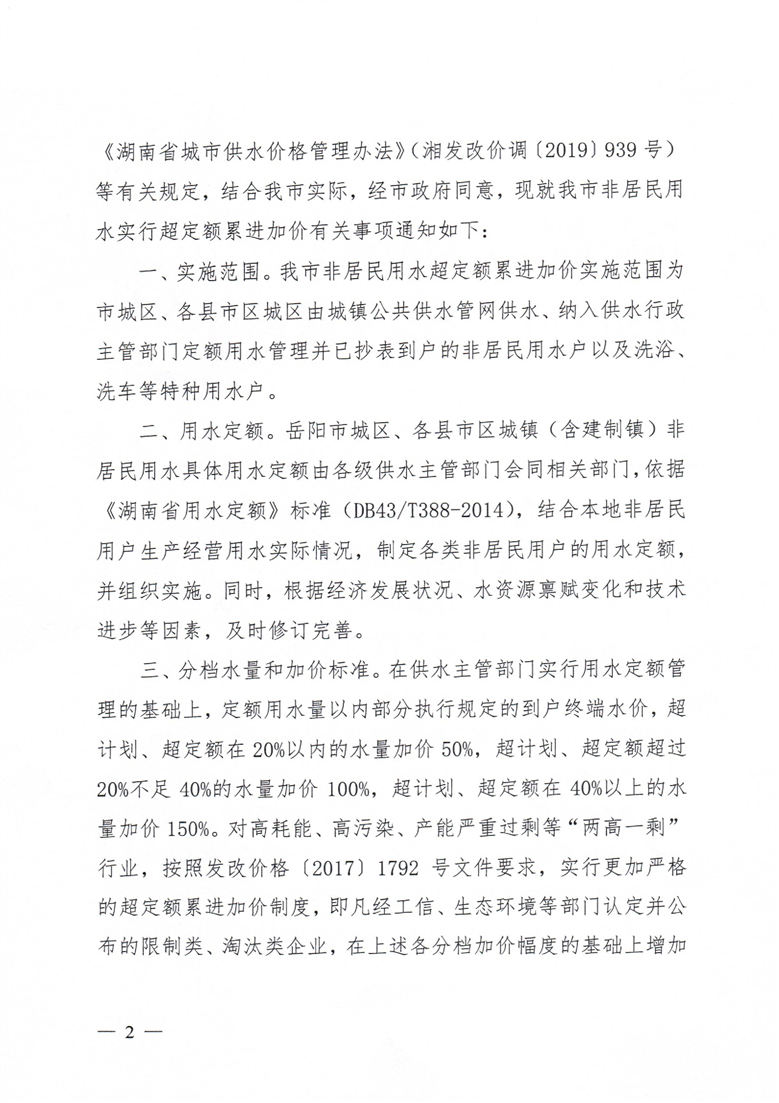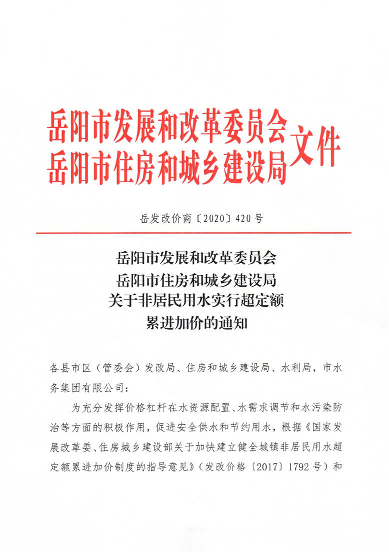 岳阳市发改委、住建局关于非居民用水实行超定额累进加价的通知
