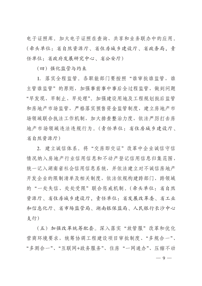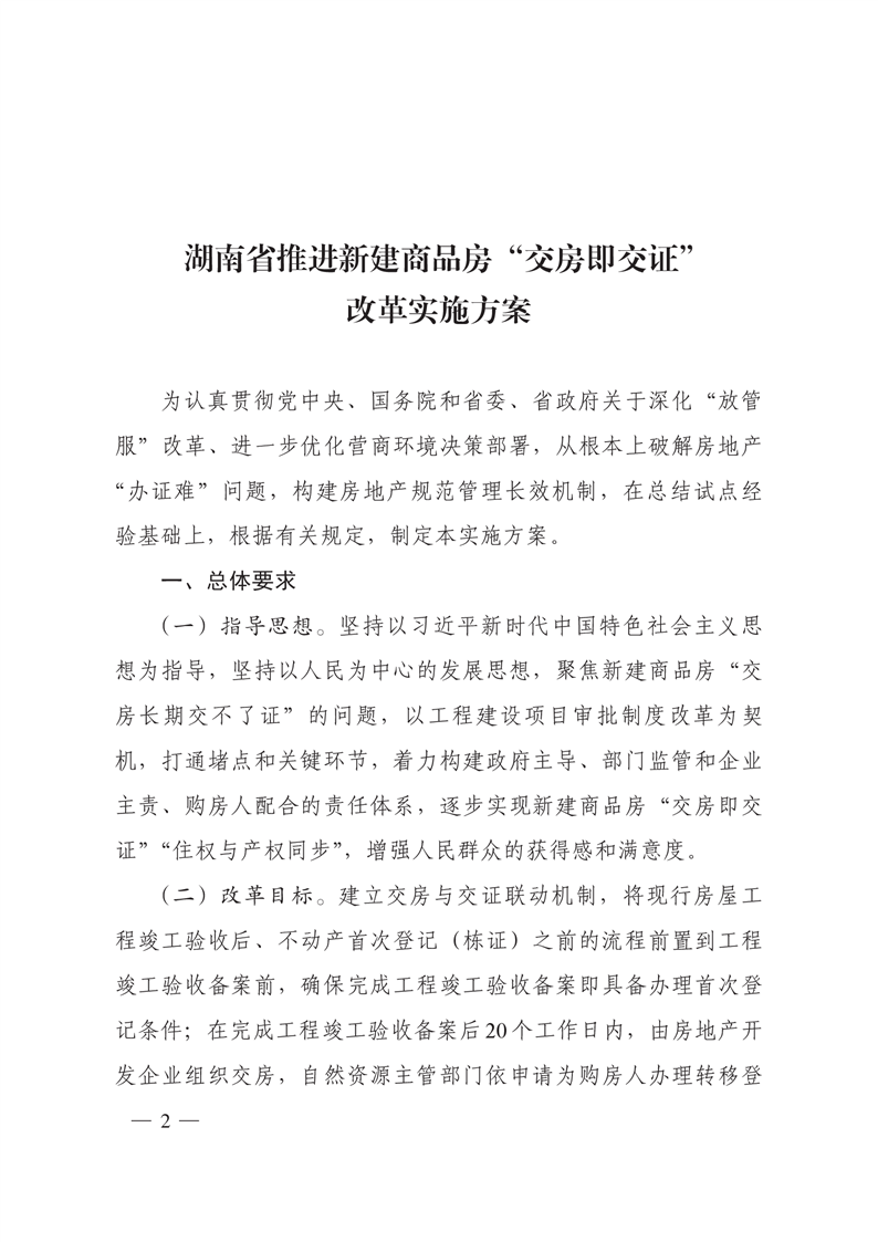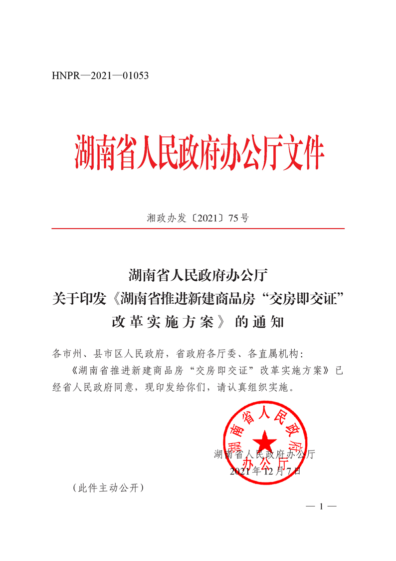湖南省人民政府办公厅关于印发《湖南省推进新建商品房“交房即交证”改革实施方案》的通知(湘政办发〔2021〕75号)