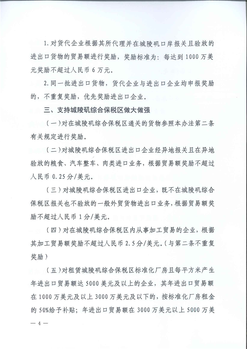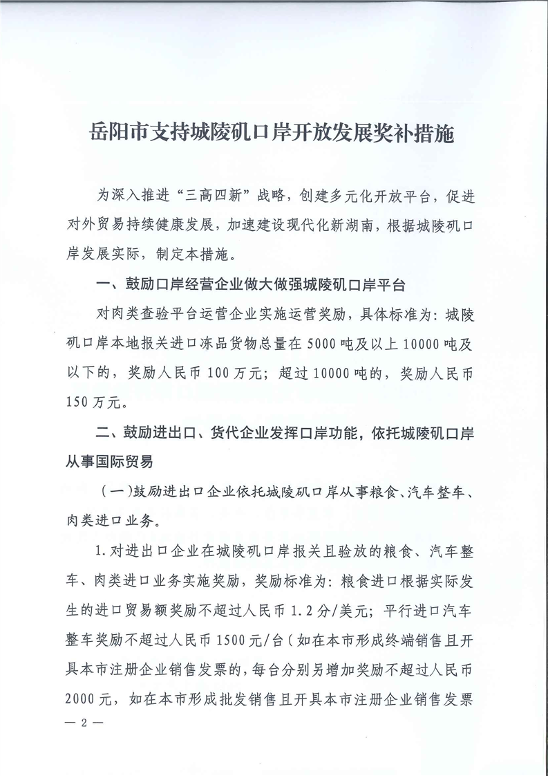 岳阳市支持城陵矶口岸开放发展奖补措施