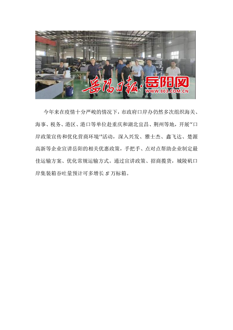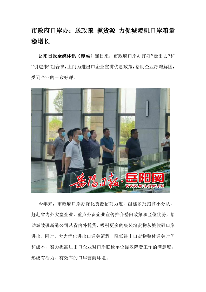 送政策 揽货源 力促城陵矶口岸箱量稳增长