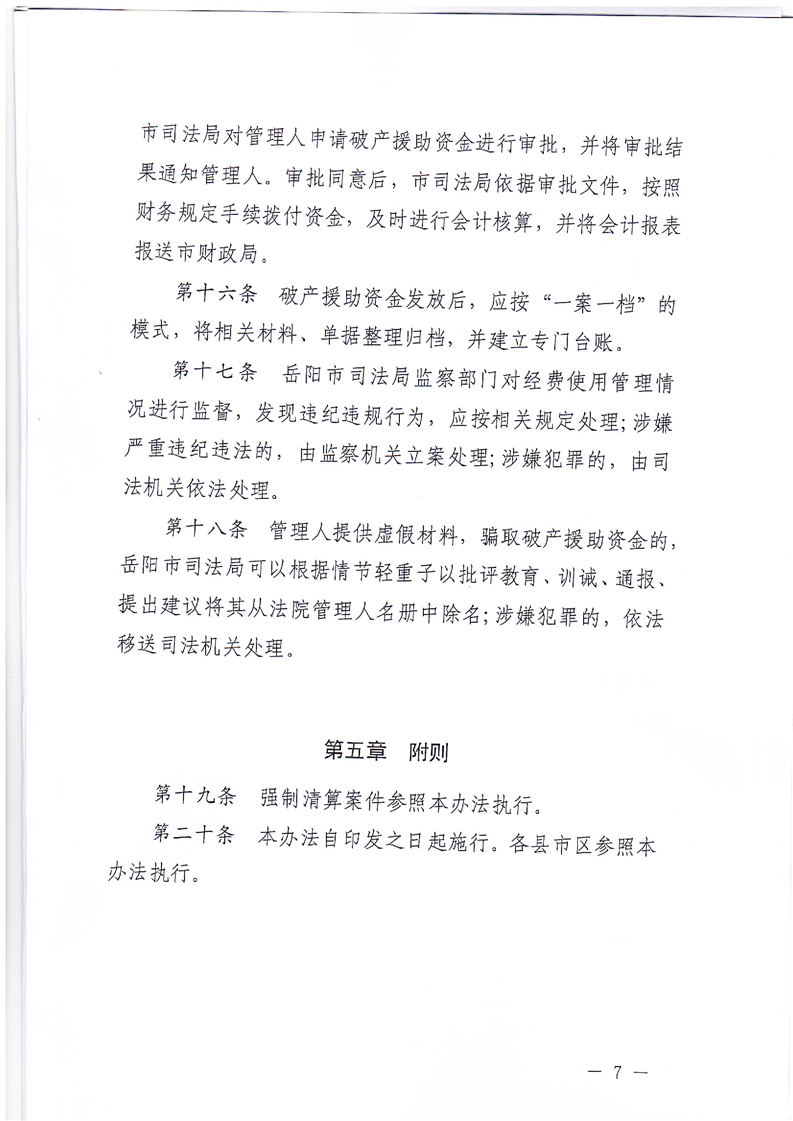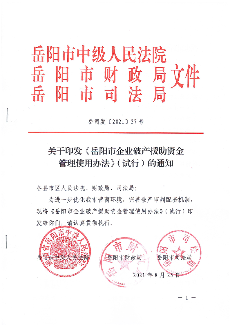 岳阳市中级人民法院、岳阳市财政局、岳阳市司法局关于印发《岳阳市企业破产援助资金管理使用办法(试行)》的通知