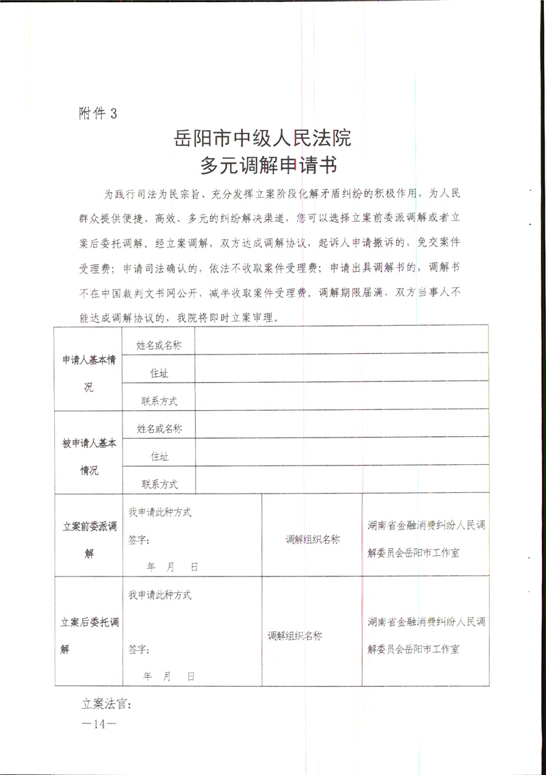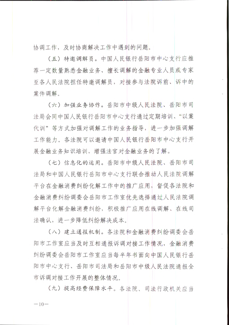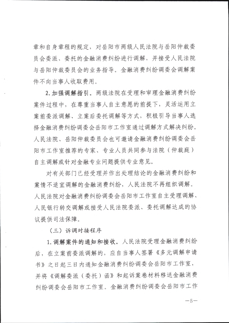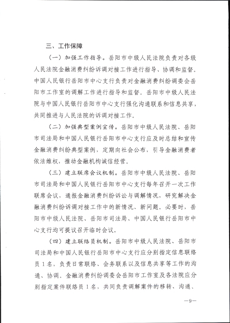 岳阳市中级人民法院、岳阳市司法局、中国人民银行岳阳市中心支行关于印发《关于推进金融消费纠纷诉调对接工作的意见(试行)》的通知