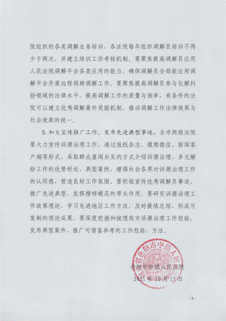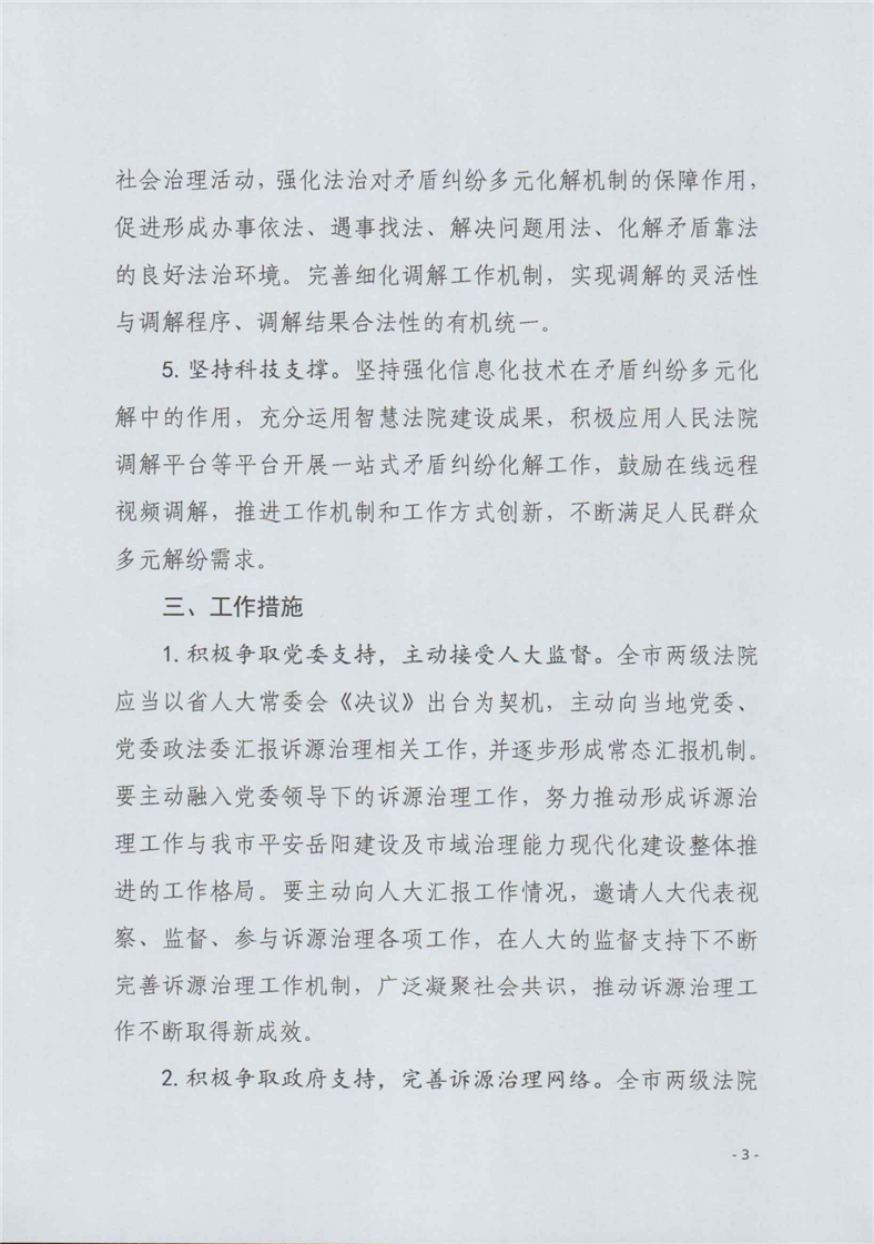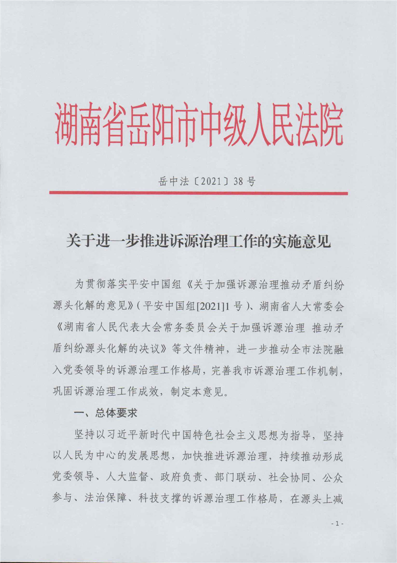 岳阳市中级人民法院关于进一步推进诉源治理工作的实施意见