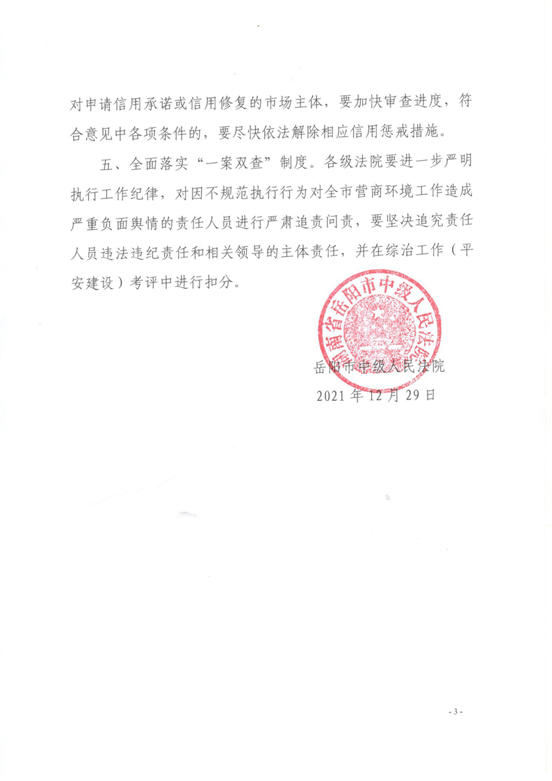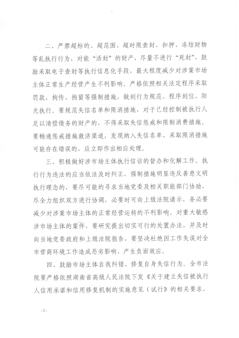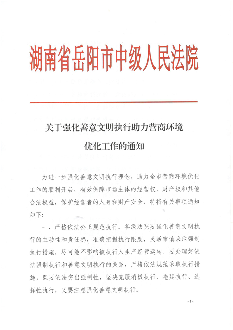 岳阳市中级人民法院关于强化善意文明执行助力营商环境优化工作的通知