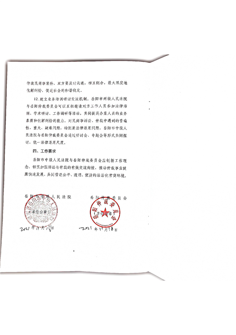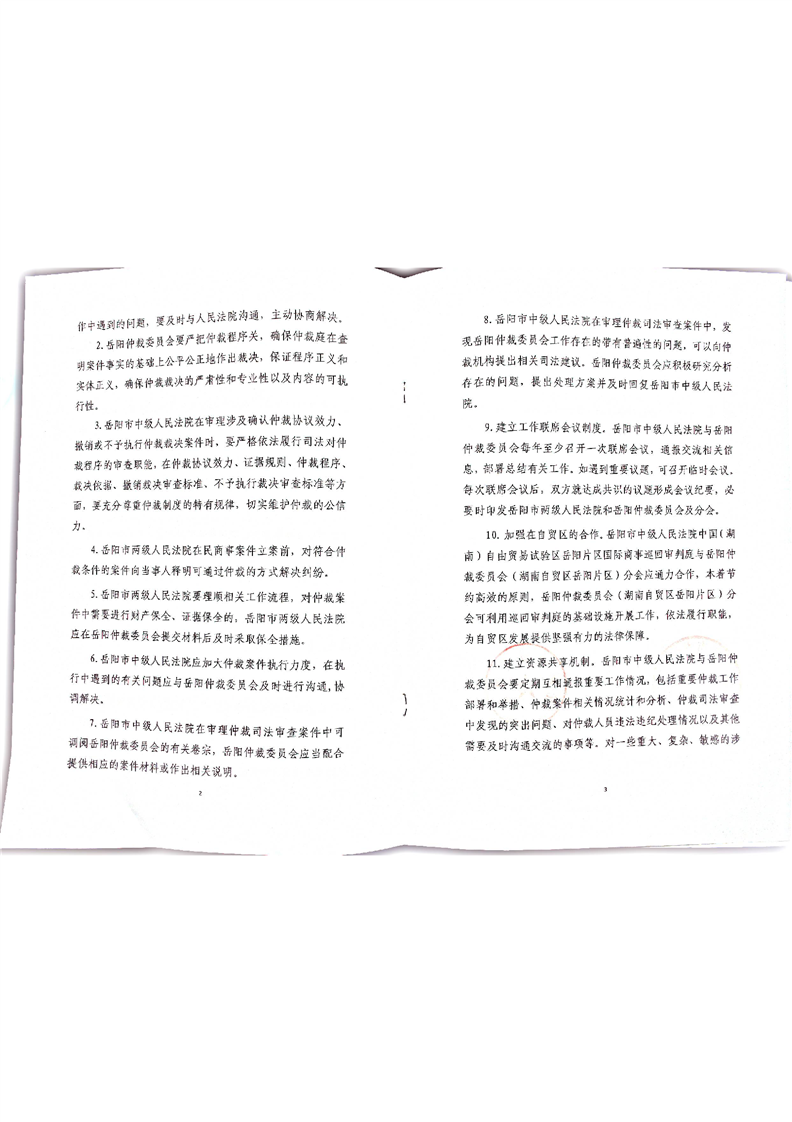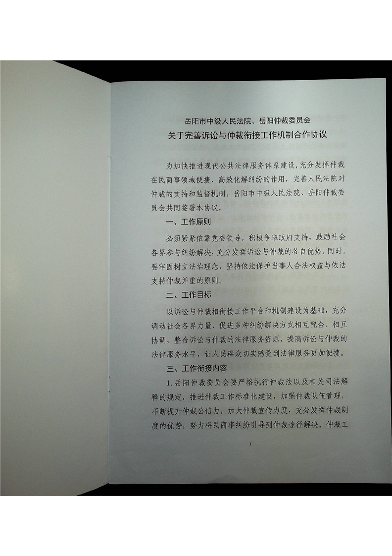 岳阳市中级人民法院、岳阳仲裁委员会《关于完善诉讼与仲裁衔接工作机制合作协议》