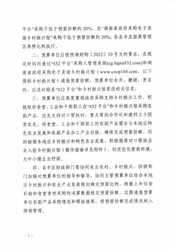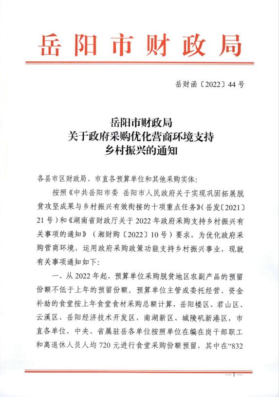 岳阳市财政局关于政府采购优化营商环境支持乡村振兴的通知-岳财函〔2022〕44号