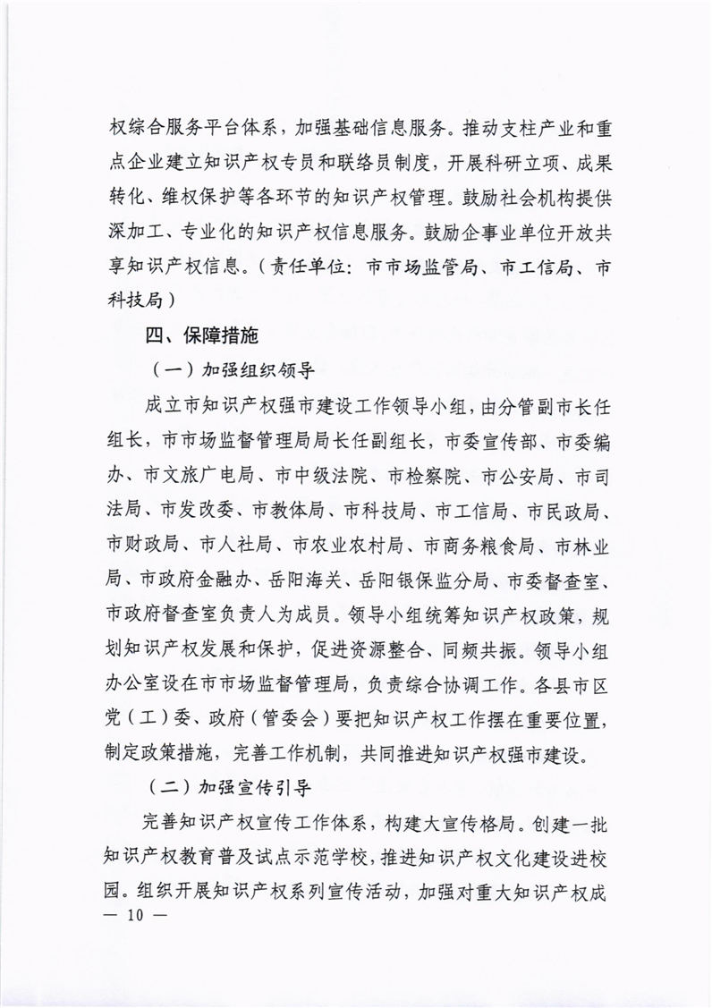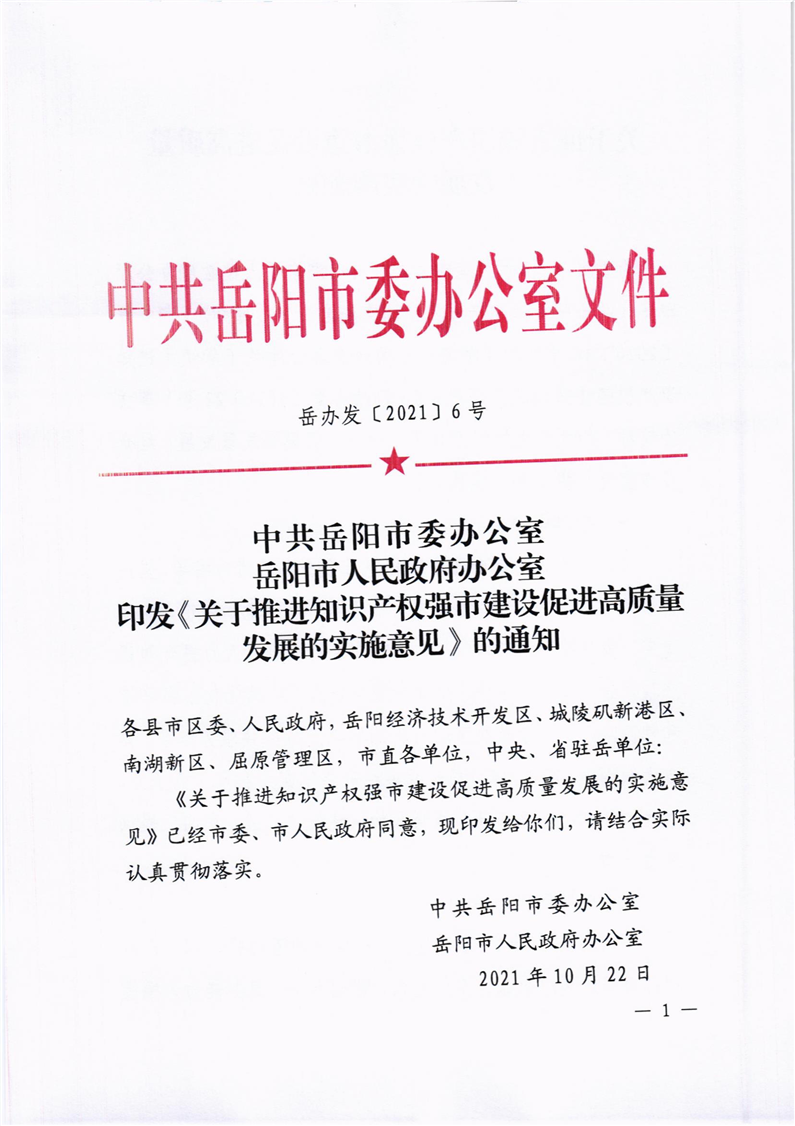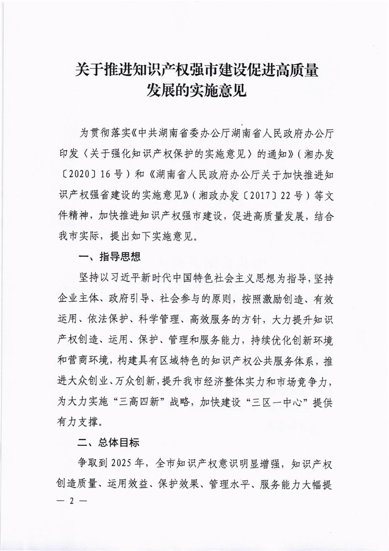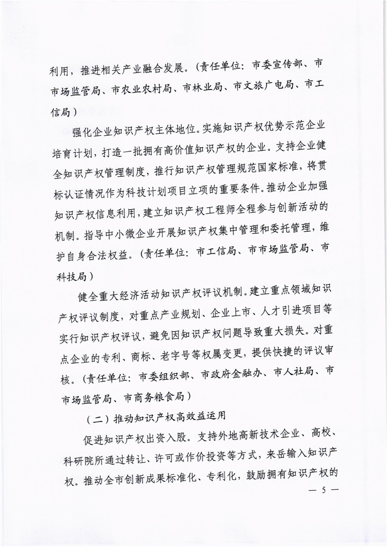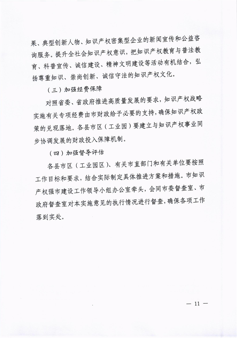 关于推进知识产权强市建设 促进高质量发展的实施意见