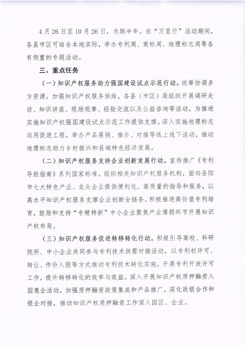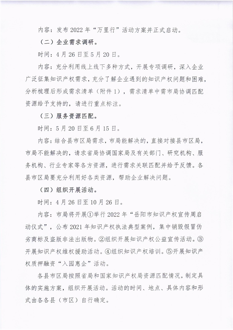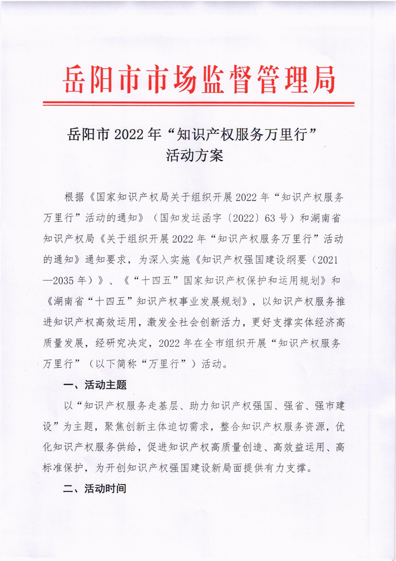 岳阳市2022年“知识产权服务万里行”活动方案