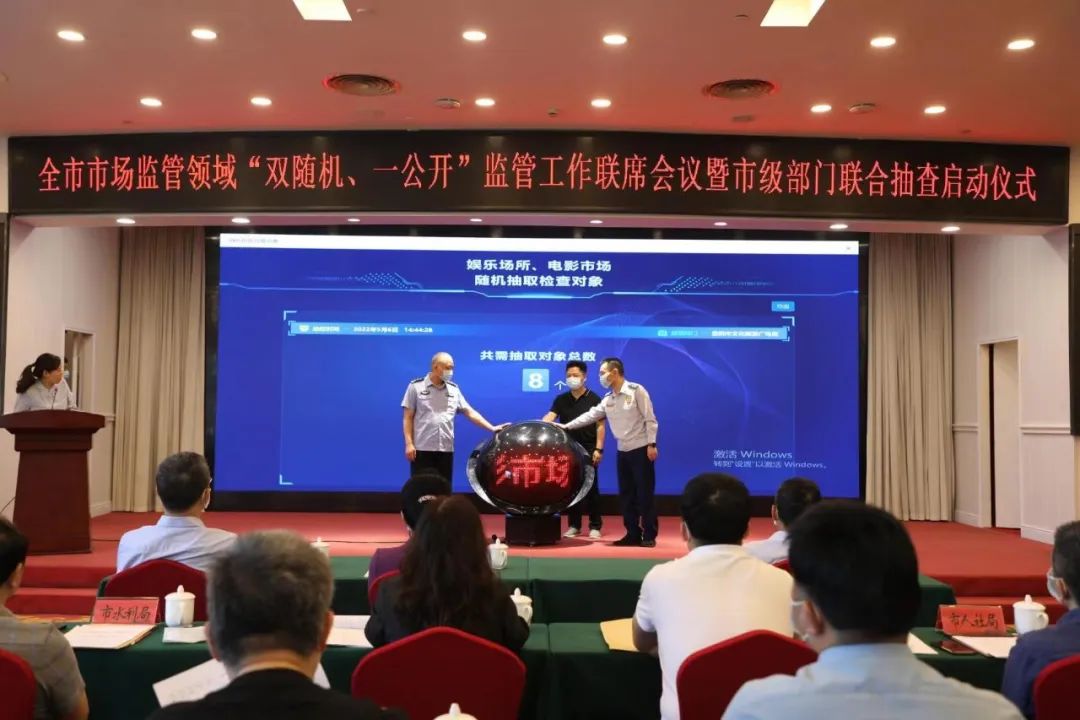 会议宣读了《关于印发<2022年度岳阳市市场监管领域市级部门联合“双随机、一公开”监管抽查工作计划>的通知》,今年市级部门联合抽查计划含30项任务,涉及22个部门。第一批启动的7个联合任务的牵头部门和参与部门负责人一起抽取了检查对象共102家,涉及房地产、成品油、出口食品生产、娱乐市场、招标代理、保安行业、劳务派遣等行业或领域。
