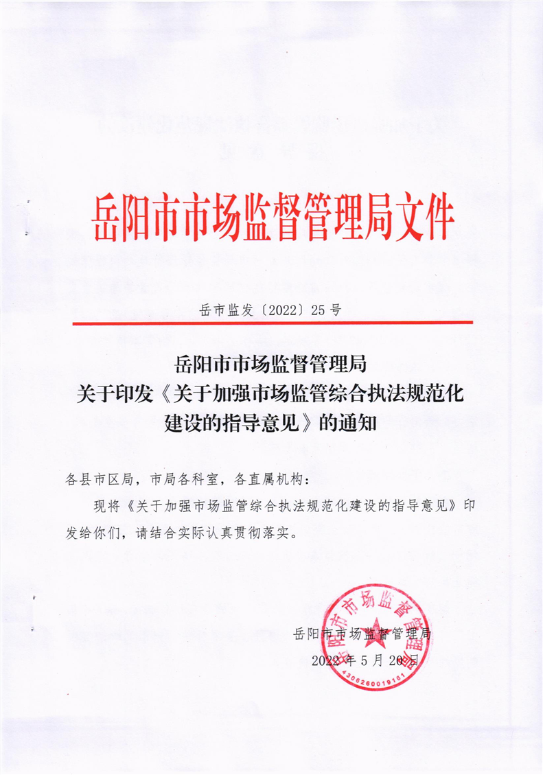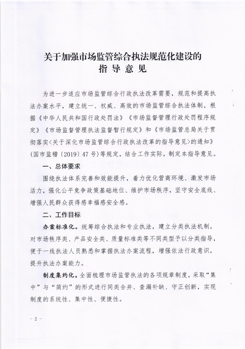 关于印发《关于加强市场监管综合执法规范化建设的指导意见》的通知