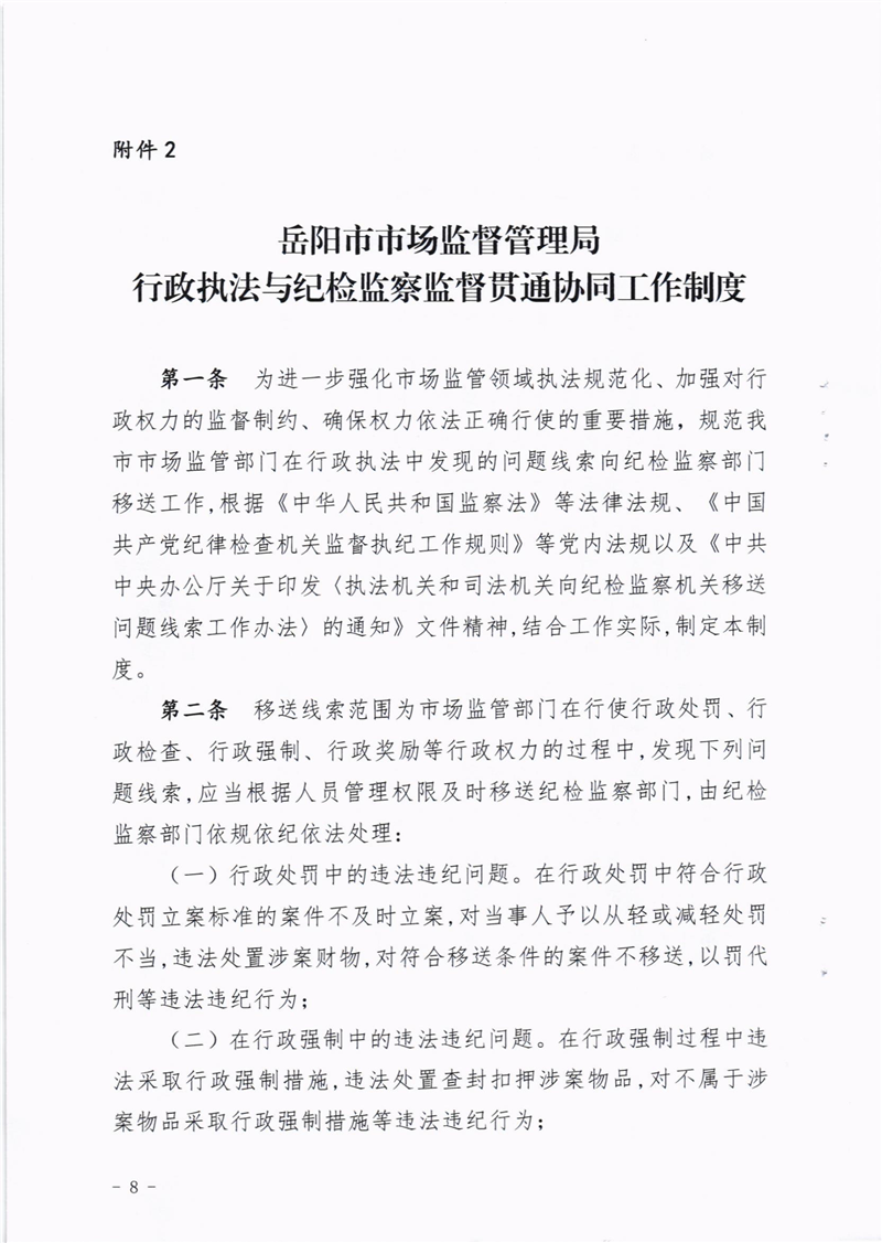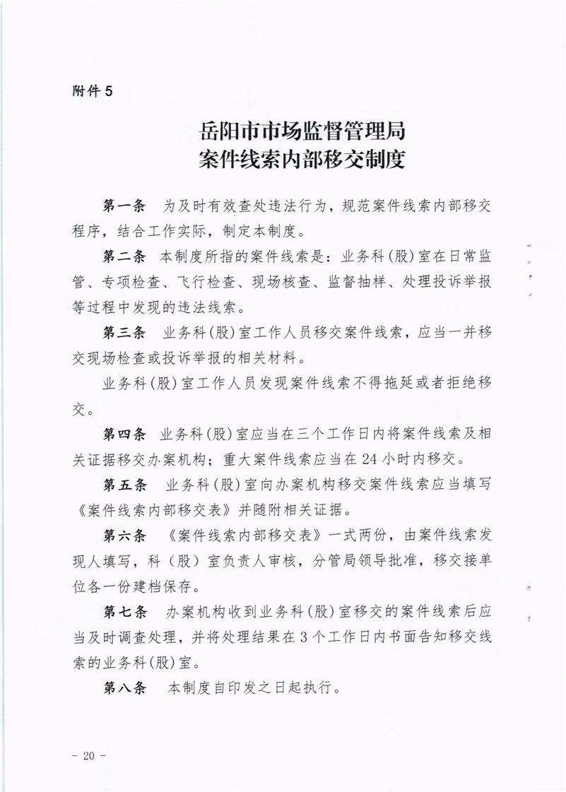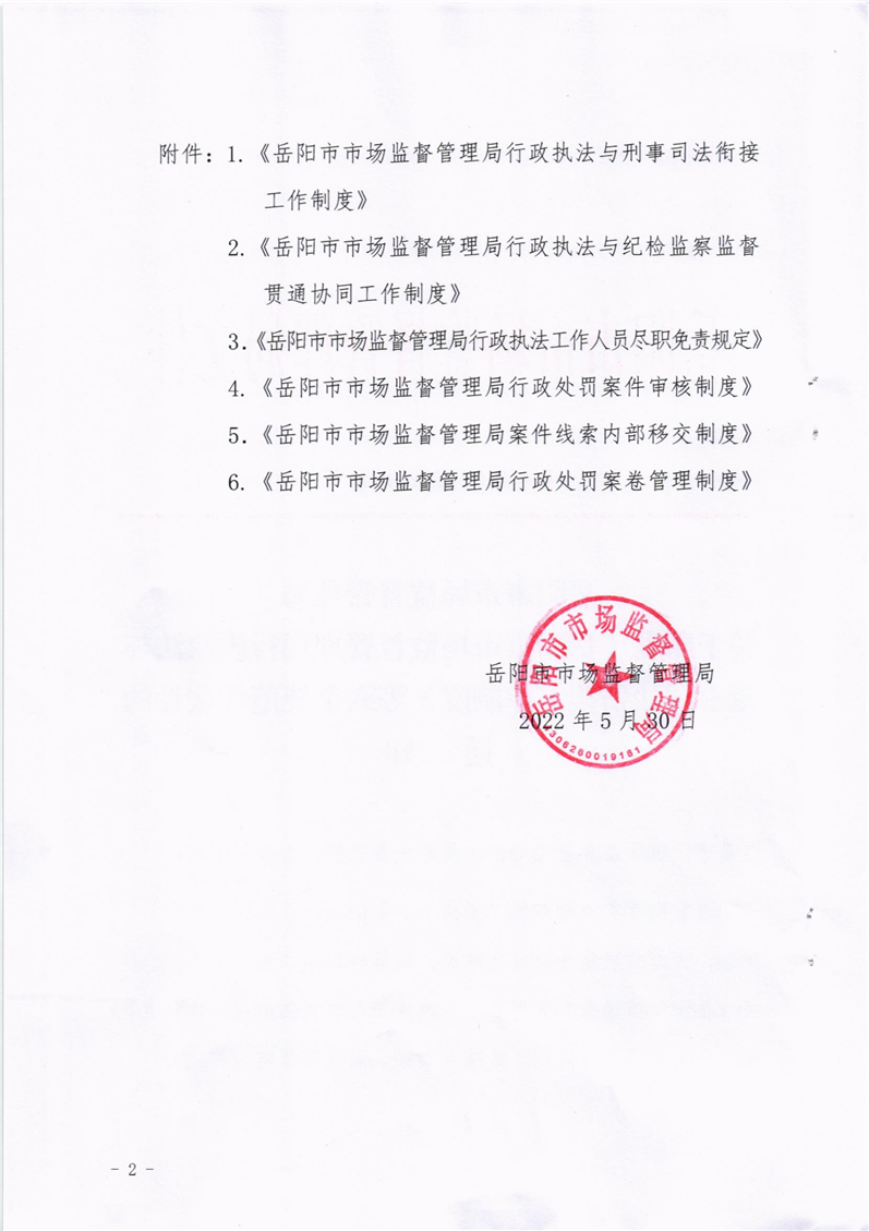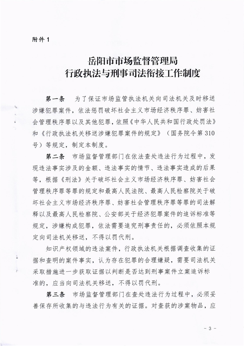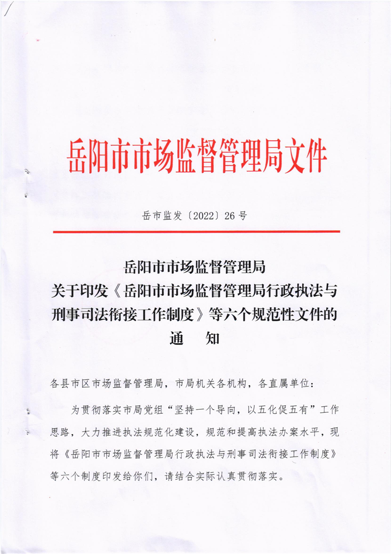 关于印发《岳阳市市场监督管理局行政执法与刑事司法衔接工作制度》等规范性文件的通知