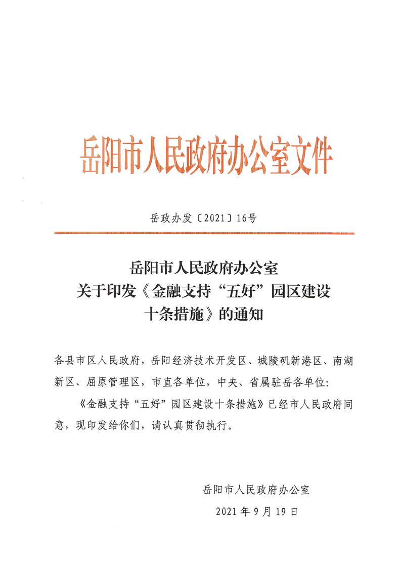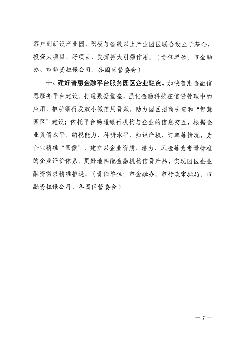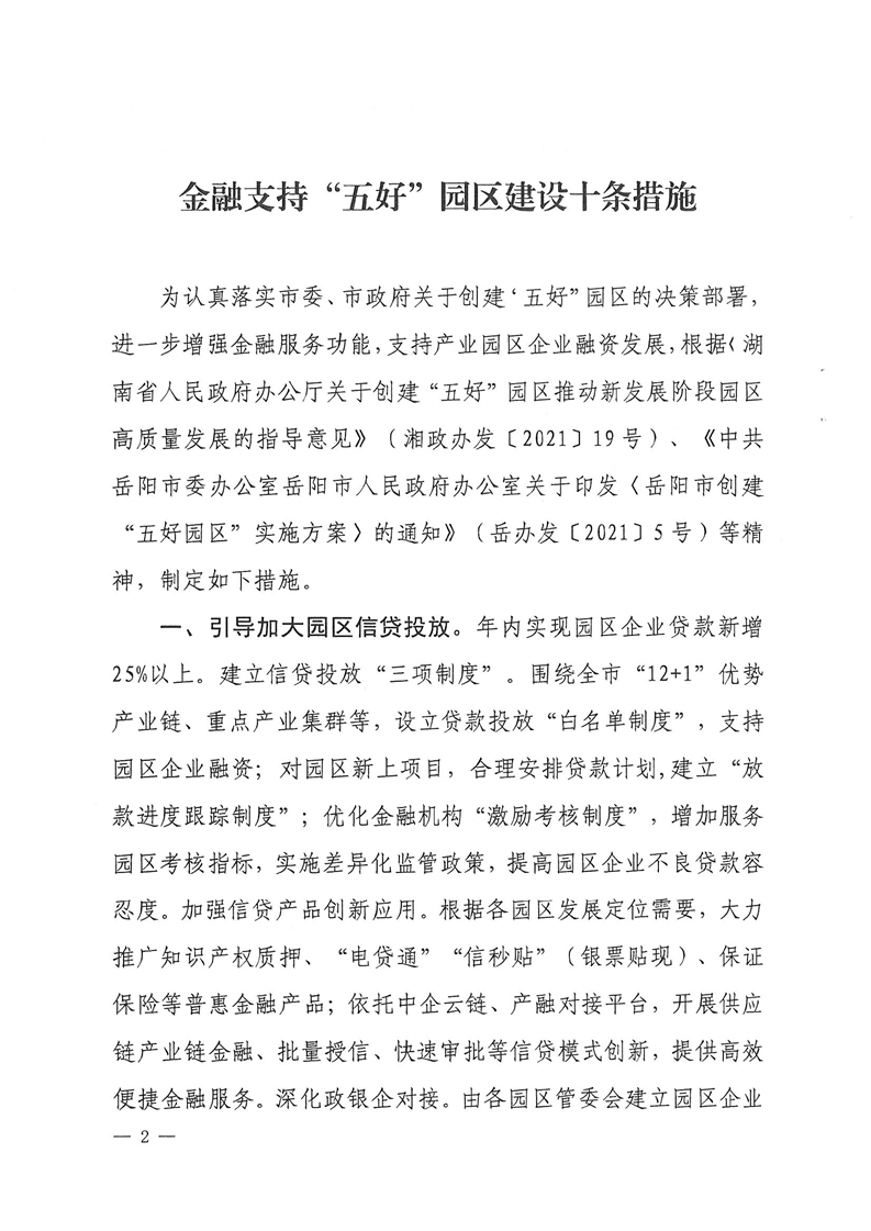 关于印发《金融支持“五好”园区建设十条措施》的通知