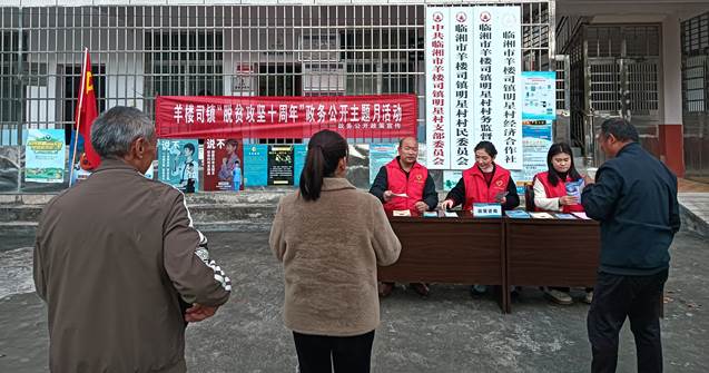 为全面展示羊楼司镇十年来脱贫攻坚、乡村振兴的成果,凝聚全面建成小康社会的强大力量,进一步提升羊楼司镇政务公开工作水平,增强群众对巩固拓展脱贫攻坚成果同乡村振兴有效衔接相关政策的了解,提升群众对政策的知晓度。2023年11月22日上午,羊楼司镇便民服务中心、羊楼司镇乡村振兴办、明星村村委、明星村驻村工作队、镇群众代表共计40余人在明星村