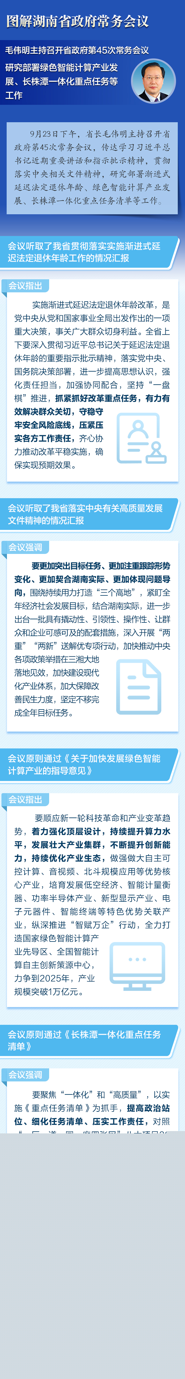 【图解】9月23日省政府常务会议:部署绿色智能计算产业发展、长株潭一体化重点任务等