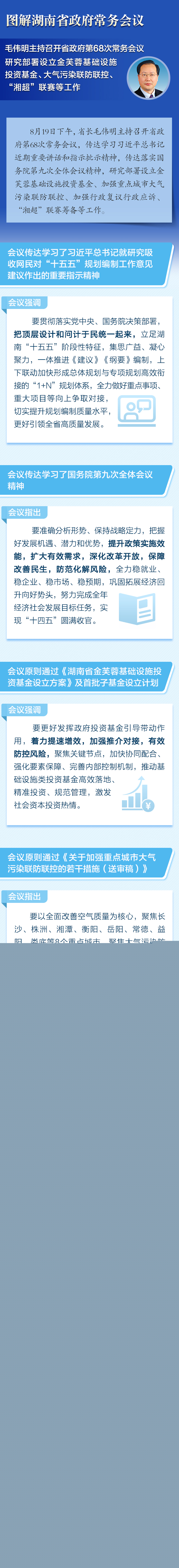 【图解】8月19日省政府常务会议:研究设立金芙蓉基础设施投资基金、大气污染联防联控、“湘超”联赛等