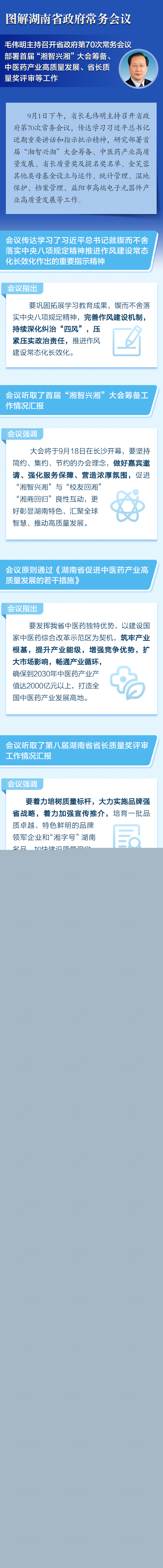 【图解】9月1日省政府常务会议:部署首届“湘智兴湘”大会筹备、中医药产业高质量发展、省长质量奖评审等工作