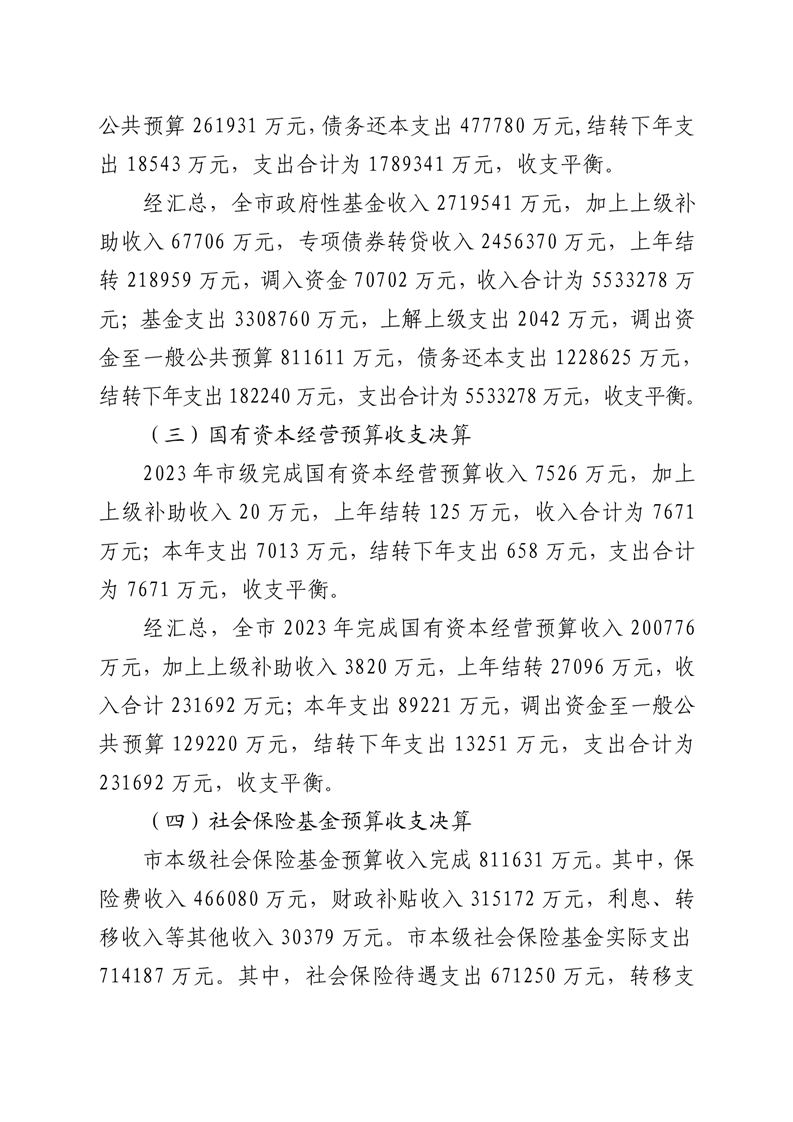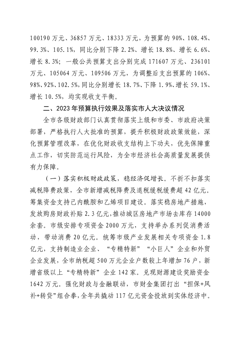 二、2023年预算执行效果及落实市人大决议情况