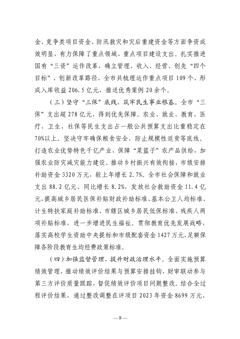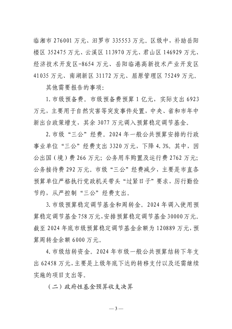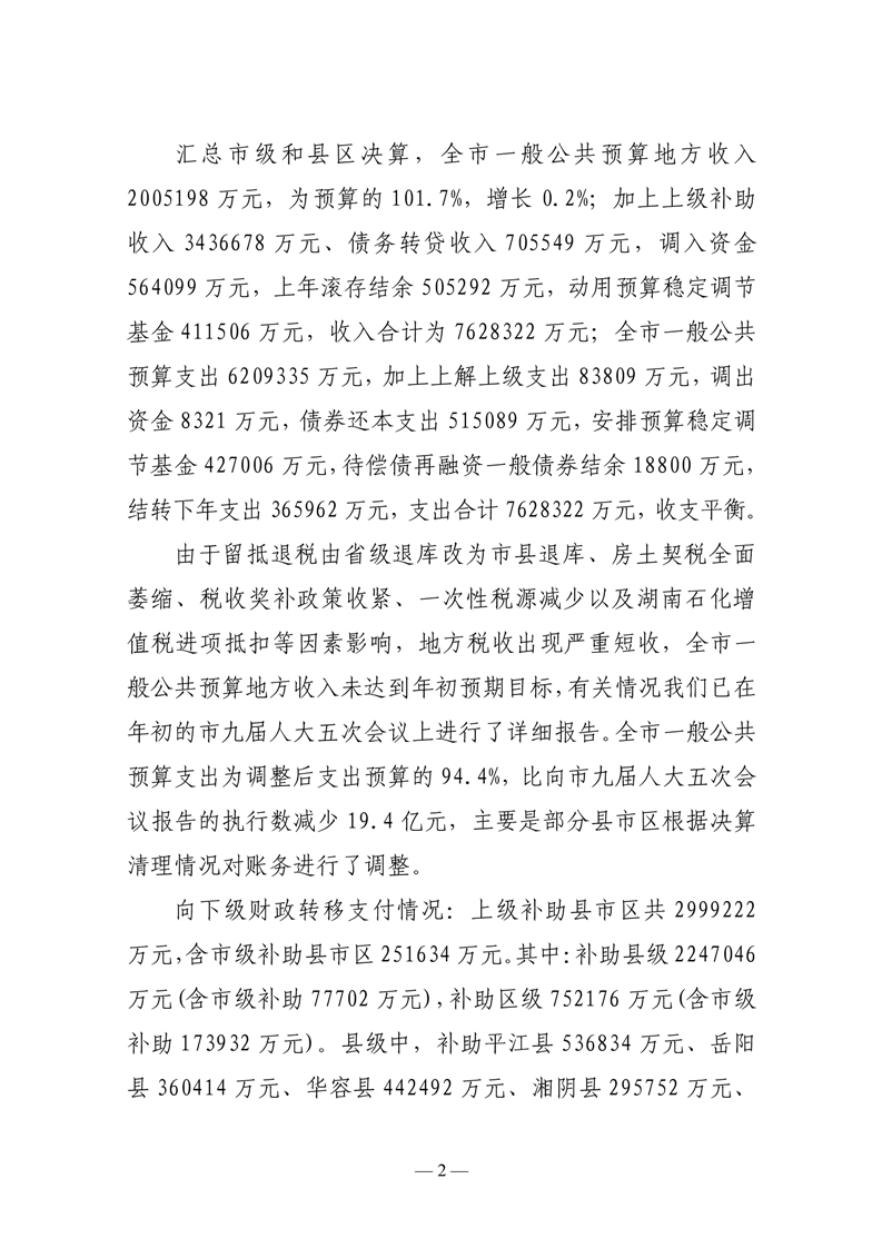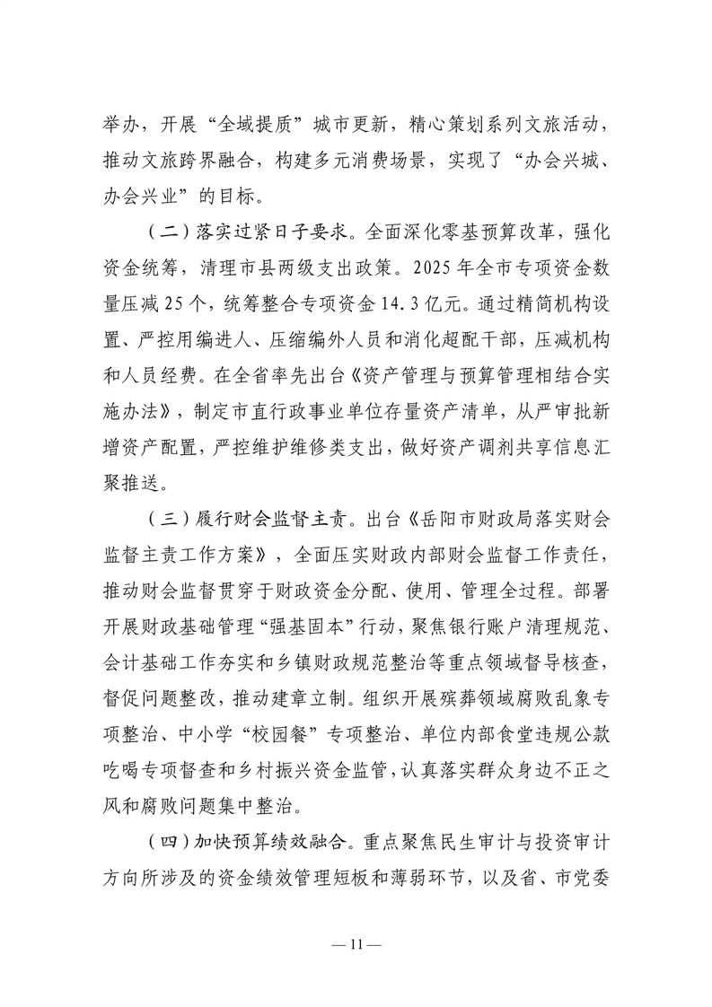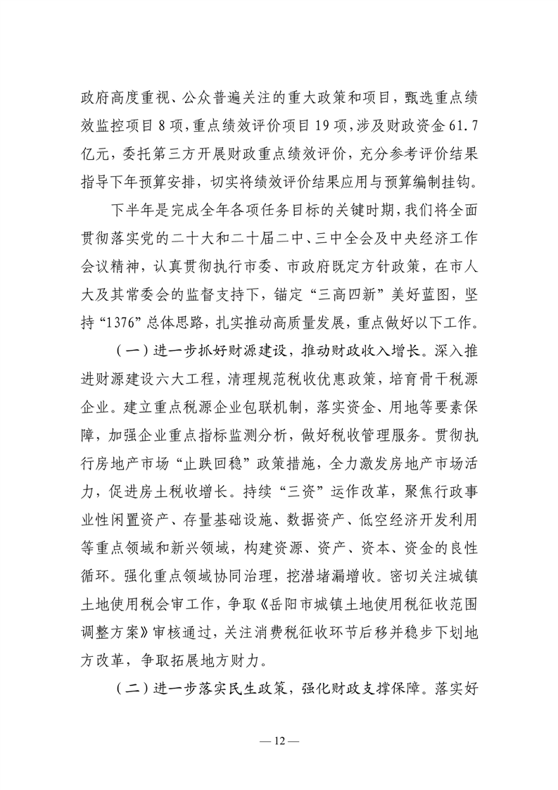第一部分:关于岳阳市2024年财政决算草案和2025年上半年预算执行情况的报告