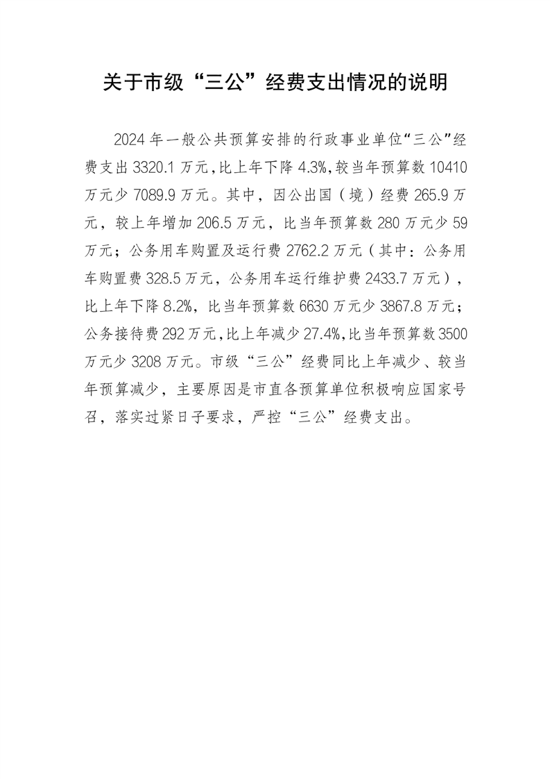 3、按照《预算法》规定需要报告的其它重点事项(含市级汇总“三公”经费决算情况、预备费使用情况等)