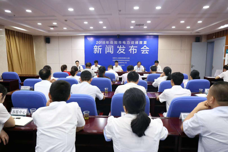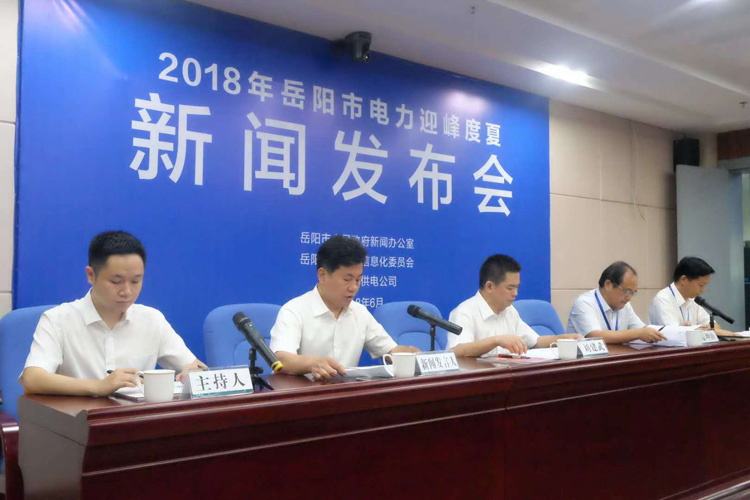 6月29日,岳阳市召开“电力迎峰度夏”新闻发布会。岳阳市经信委党委委员、工会主任刘建武,党委委员、副主任胡向荣和国网岳阳供电公司党委委员、副总经理姜坤山,副总经济师欧阳归根出席发布会介绍相关情况、回答记者提问。岳阳市政府新闻办副主任朱琳主持新闻发布会。以及电力用户代表参加了新闻发布会。