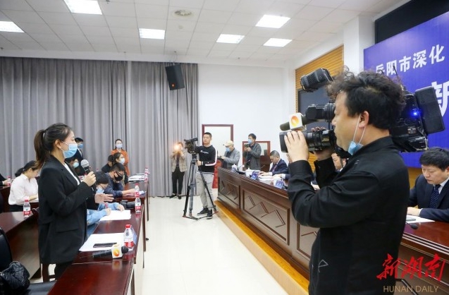 岳阳市委宣传部对外宣传办主任陈徐恩主持新闻发布会,市公安局、市政务服务中心、市发改委、市卫健委、市自然资源和规划局等部门负责人,就改革举措相关内容回答了记者提问。